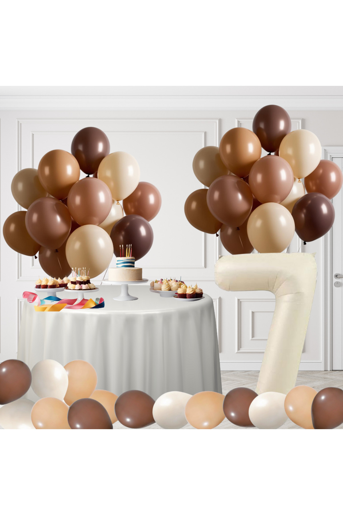 3 Yaş Retro Kahve Bej Ten Rengi Doğum Günü Seti Bej Folyo Rakam TKSPRTYRTRKHVE