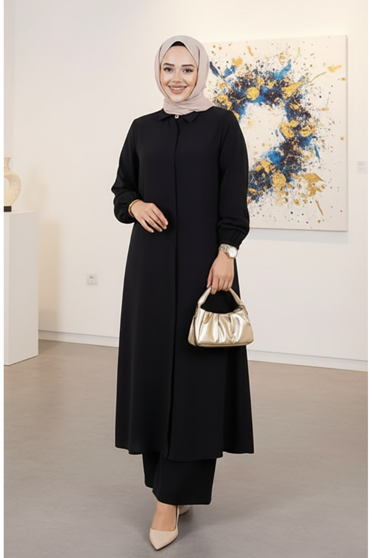 Yazılı 3 Lü Tesettür Takım 4012-01 Siyah İndigo Yazılı 3 Lü Tesettür Takım 4012-01 Siyah İndigo NEWSLS4012 50-52