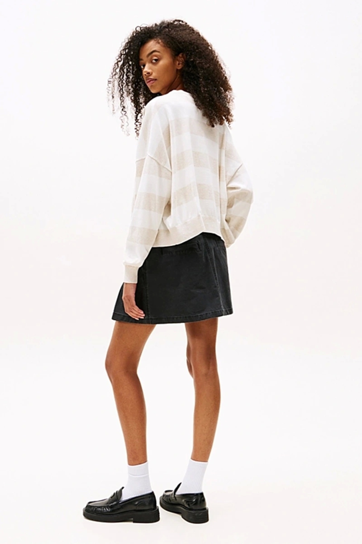 Kadın Rahat Kesim Çizgili Bej Kazak DW0DW20968AE3 Kadın Rahat Kesim Çizgili Bej Kazak DW0DW20968AE3 P60236S3355 L