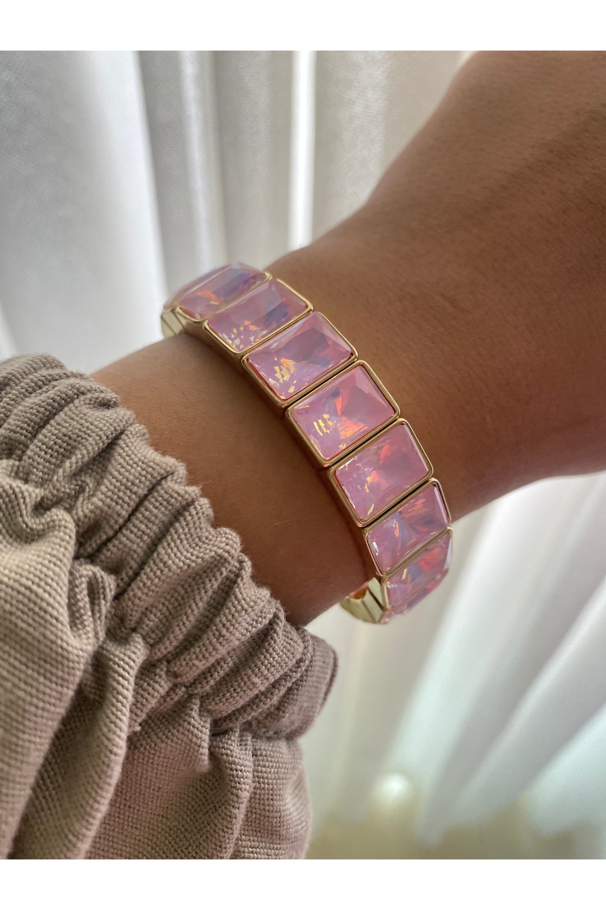 Özel Seri Pembe Porselen Taş Kaplama Esnek Her Bileğe Uyumlu Lastikli Bileklik Özel Seri Pembe Porselen Taş Kaplama Esnek Her Bileğe Uyumlu Lastikli Bileklik BB000004 تک سایز