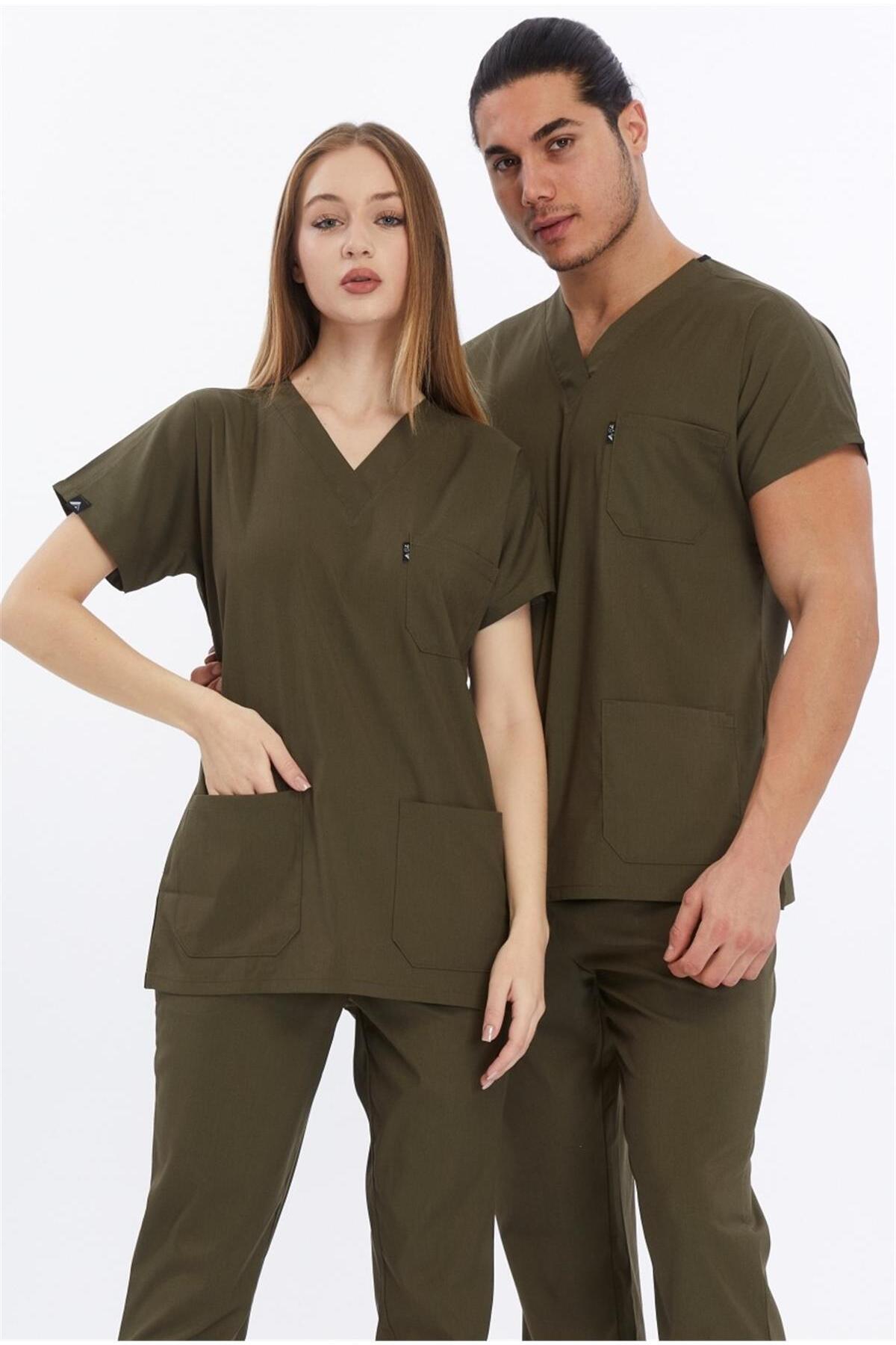 Happiness Basic - Likralı Doktor Hemşire Scrubs Tek Üst Cerrahi Forma (UNISEX), Haki Happiness Basic - Likralı Doktor Hemşire Scrubs Tek Üst Cerrahi Forma (UNISEX), Haki TYC3D8C56D70EE732A6A96B00 2XL