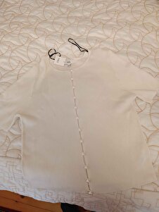 Dokulu Yuvarlak Yaka İnci Görünümlü Düğmeli Crop Triko Bluz Dokulu Yuvarlak Yaka İnci Görünümlü Düğmeli Crop Triko Bluz T38006445 XL