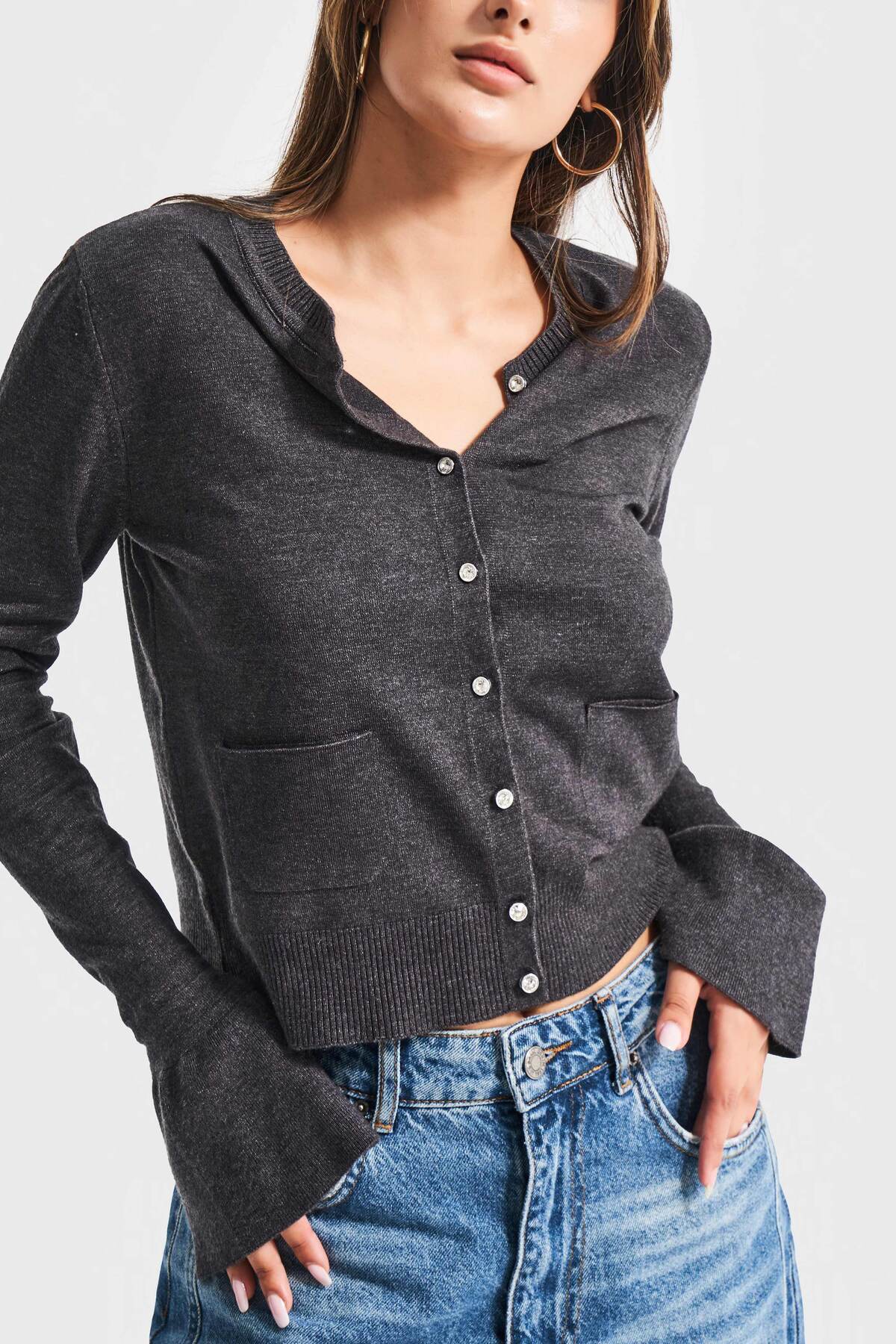 Kadın Antrasit Renk w5-45 Volanlı Kol Önü Cepli Düğmeli Viskon Karışımlı Triko Hırka Kadın Antrasit Renk w5-45 Volanlı Kol Önü Cepli Düğmeli Viskon Karışımlı Triko Hırka ITSBASIC 4265 XS/S