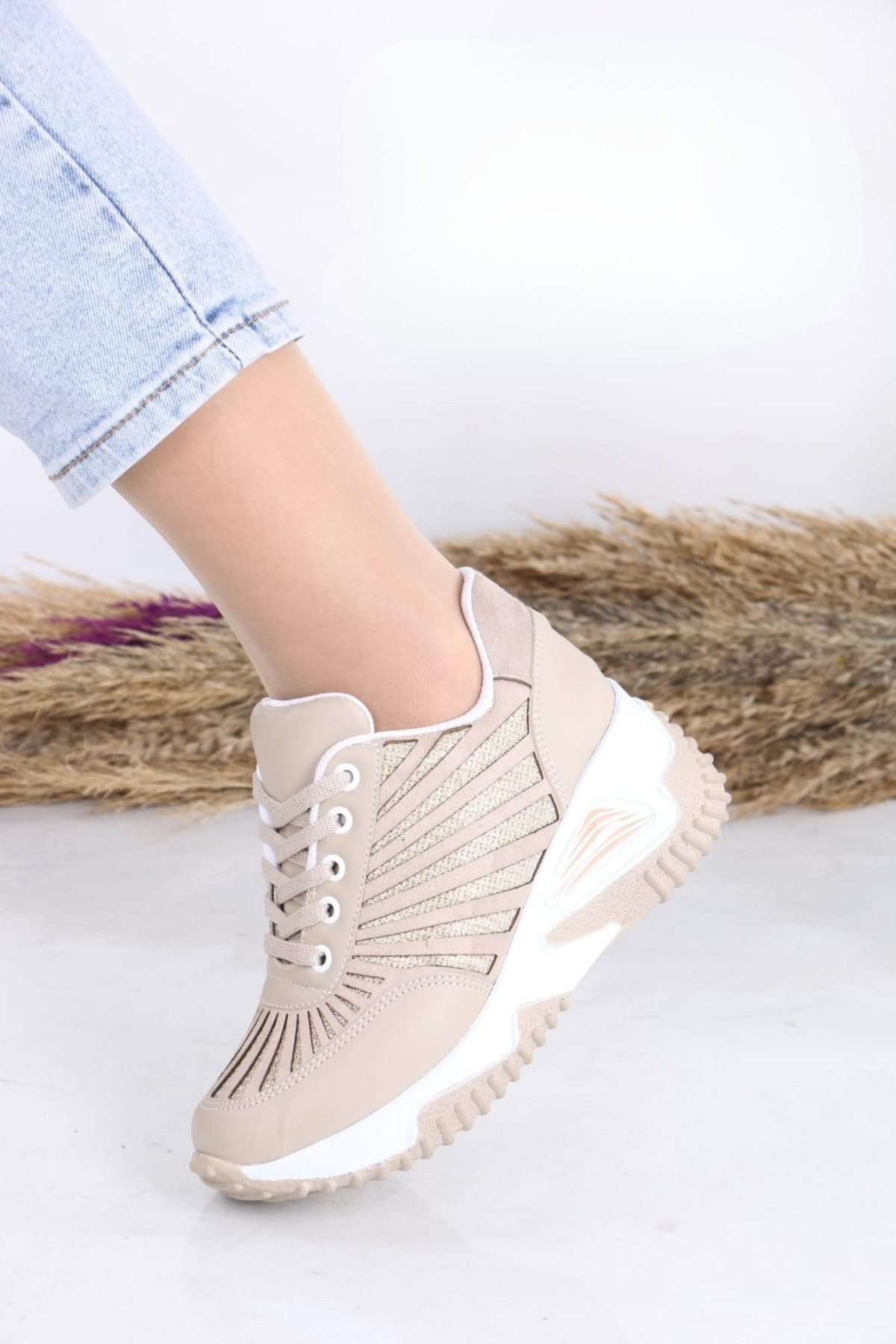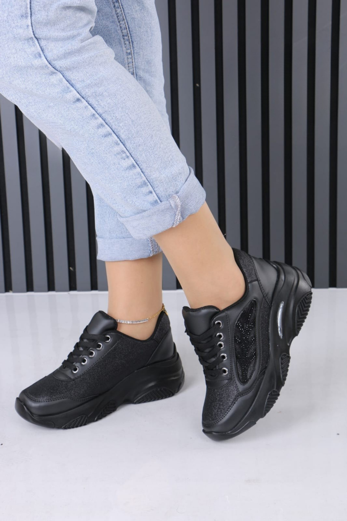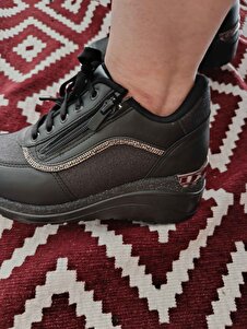 Kadın Sade Siyah Cilt Fermuar 7 Cm Gizli Topuk Ortopedik Spor Ayakkabı WSB4106 Kadın Sade Siyah Cilt Fermuar 7 Cm Gizli Topuk Ortopedik Spor Ayakkabı WSB4106 40