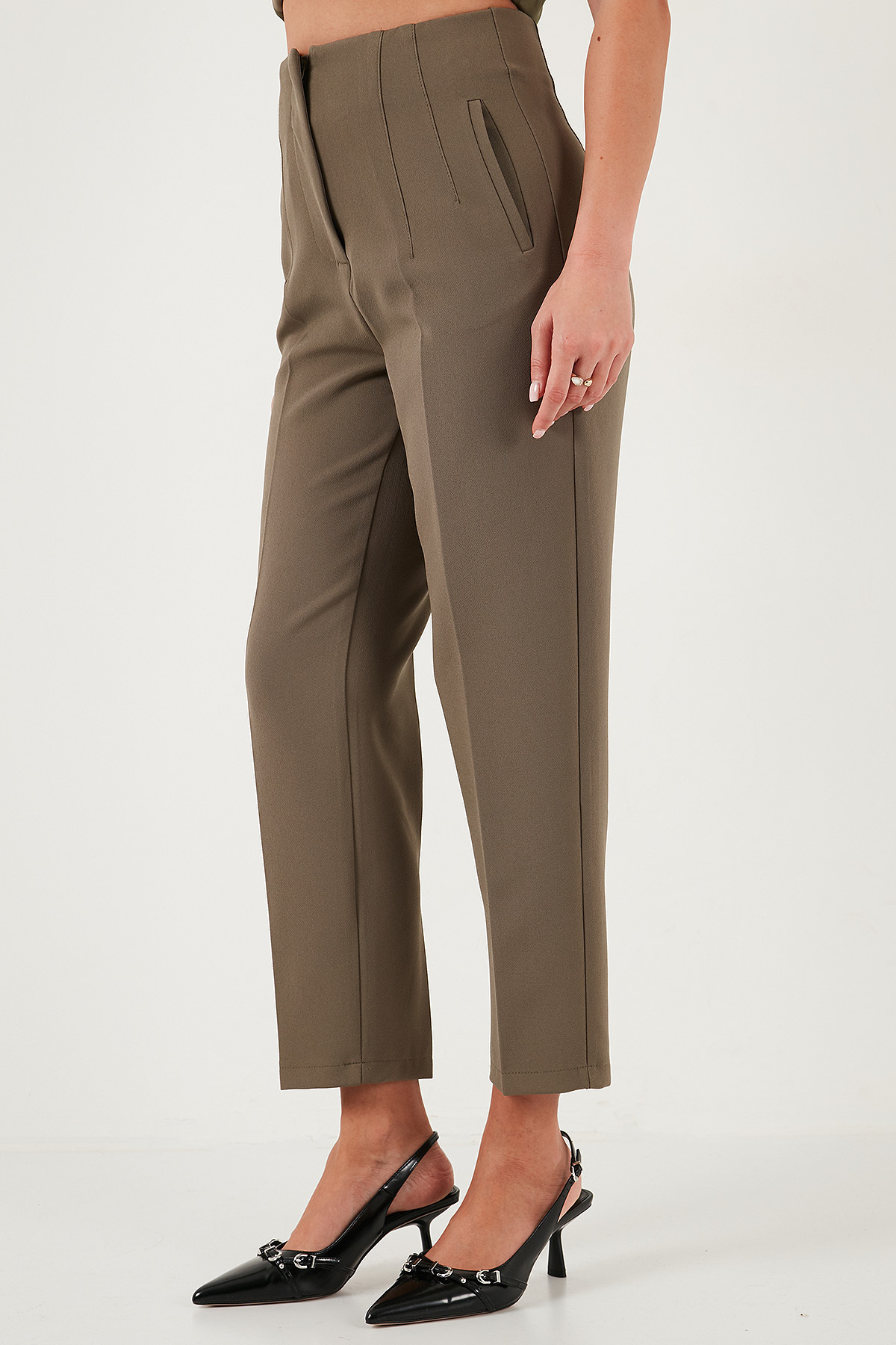 Fermurarlı Yüksek Bel Dar Paça Carrot Fit Kumaş Pantolon Fermurarlı Yüksek Bel Dar Paça Carrot Fit Kumaş Pantolon W51051BB 44