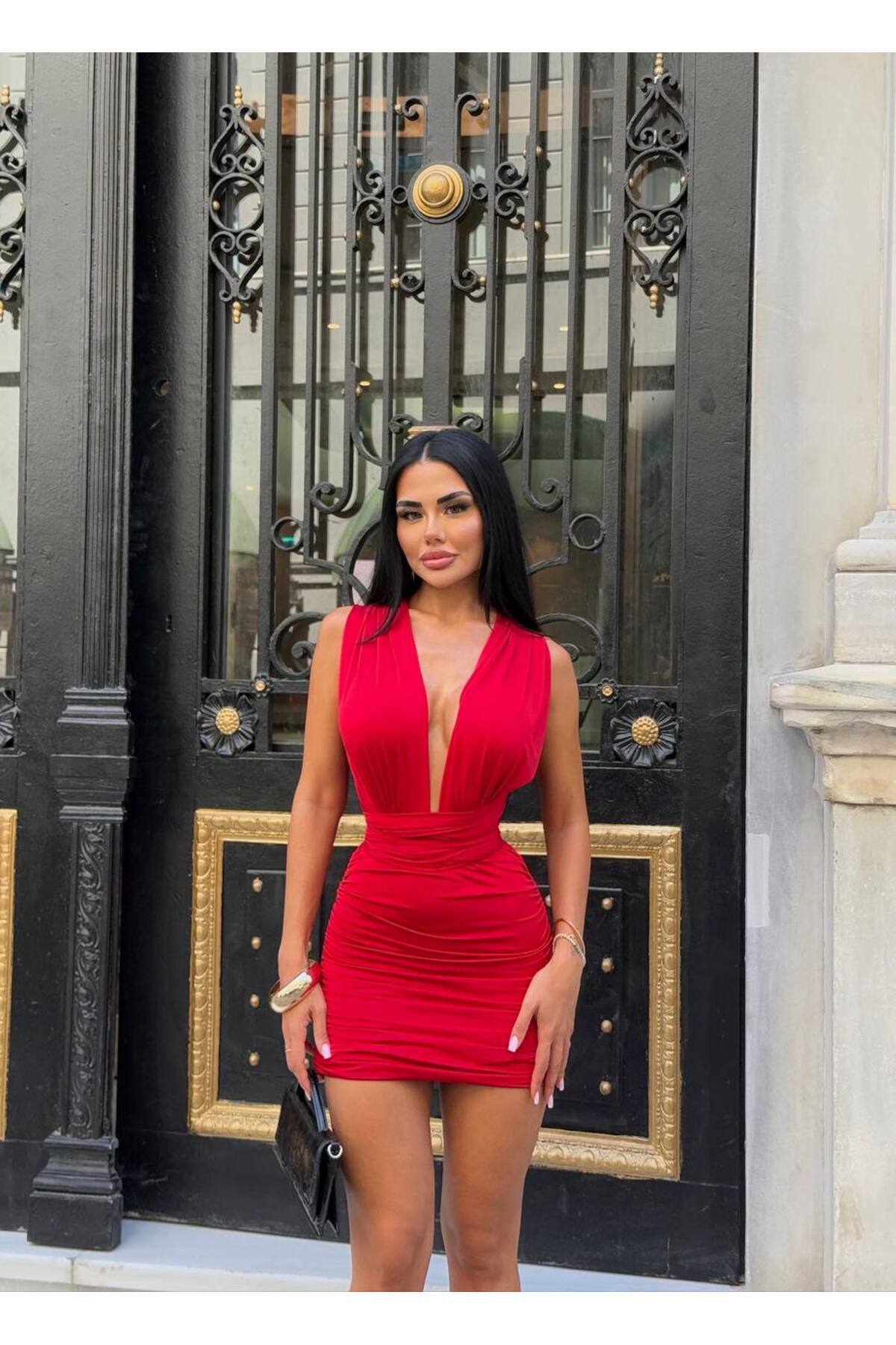 Farklı Bağlamalı Büzgülü Mini Elbise Farklı Bağlamalı Büzgülü Mini Elbise ZGX1043 L