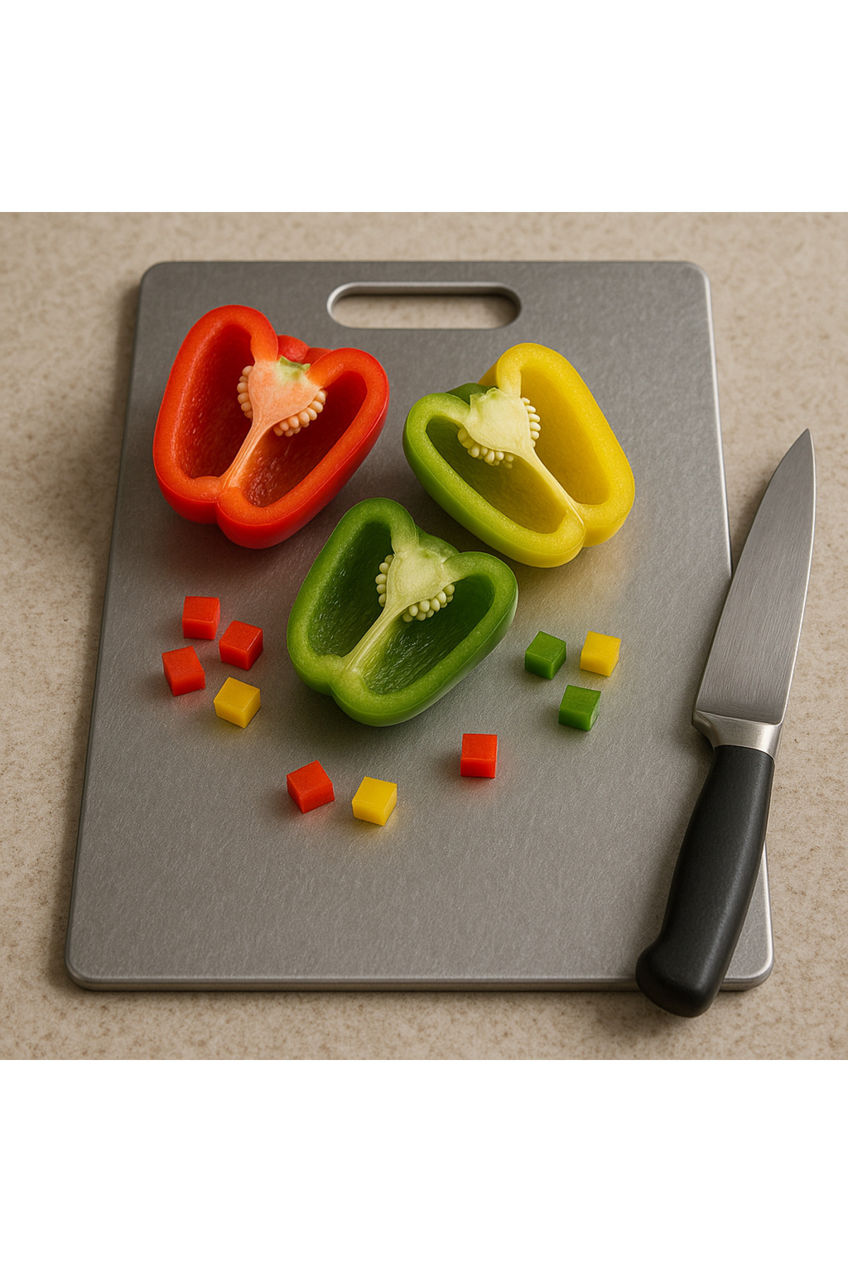 29x19 Çelik Kesme Tahtası – Tekli Paslanmaz Çelik , Hijyenik ve Dayanıklı Mutfak Doğrama Panosu 29x19 Çelik Kesme Tahtası – Tekli Paslanmaz Çelik , Hijyenik ve Dayanıklı Mutfak Doğrama Panosu KRMZ7568 تک سایز