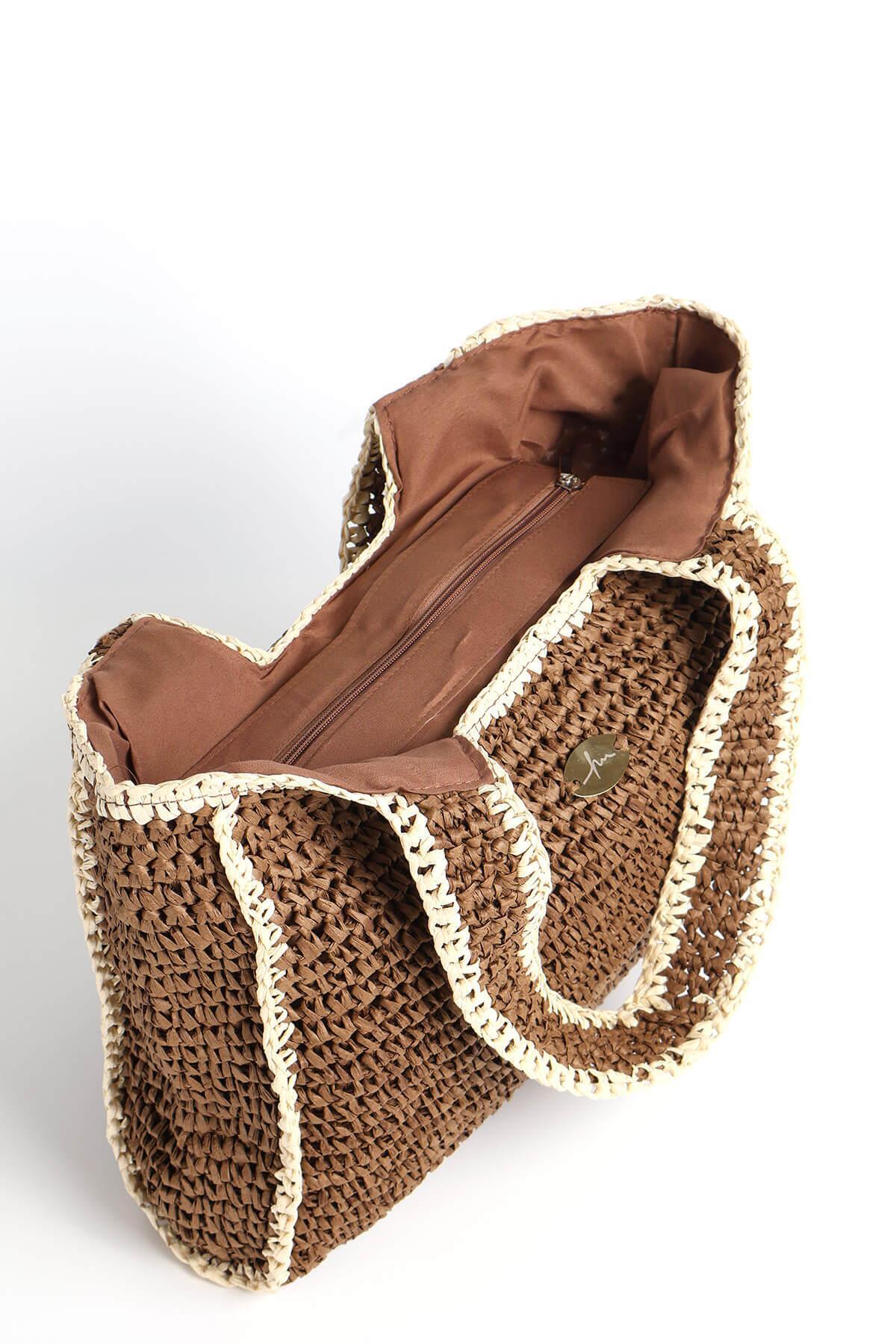 İmza Detaylı Çift Renk Kahverengi Bej Örme Hasır Çanta 1041 İmza Detaylı Çift Renk Kahverengi Bej Örme Hasır Çanta 1041 تک سایز