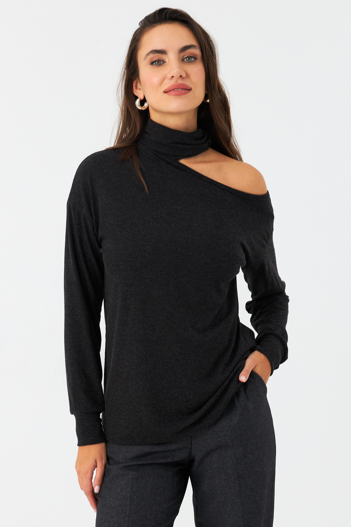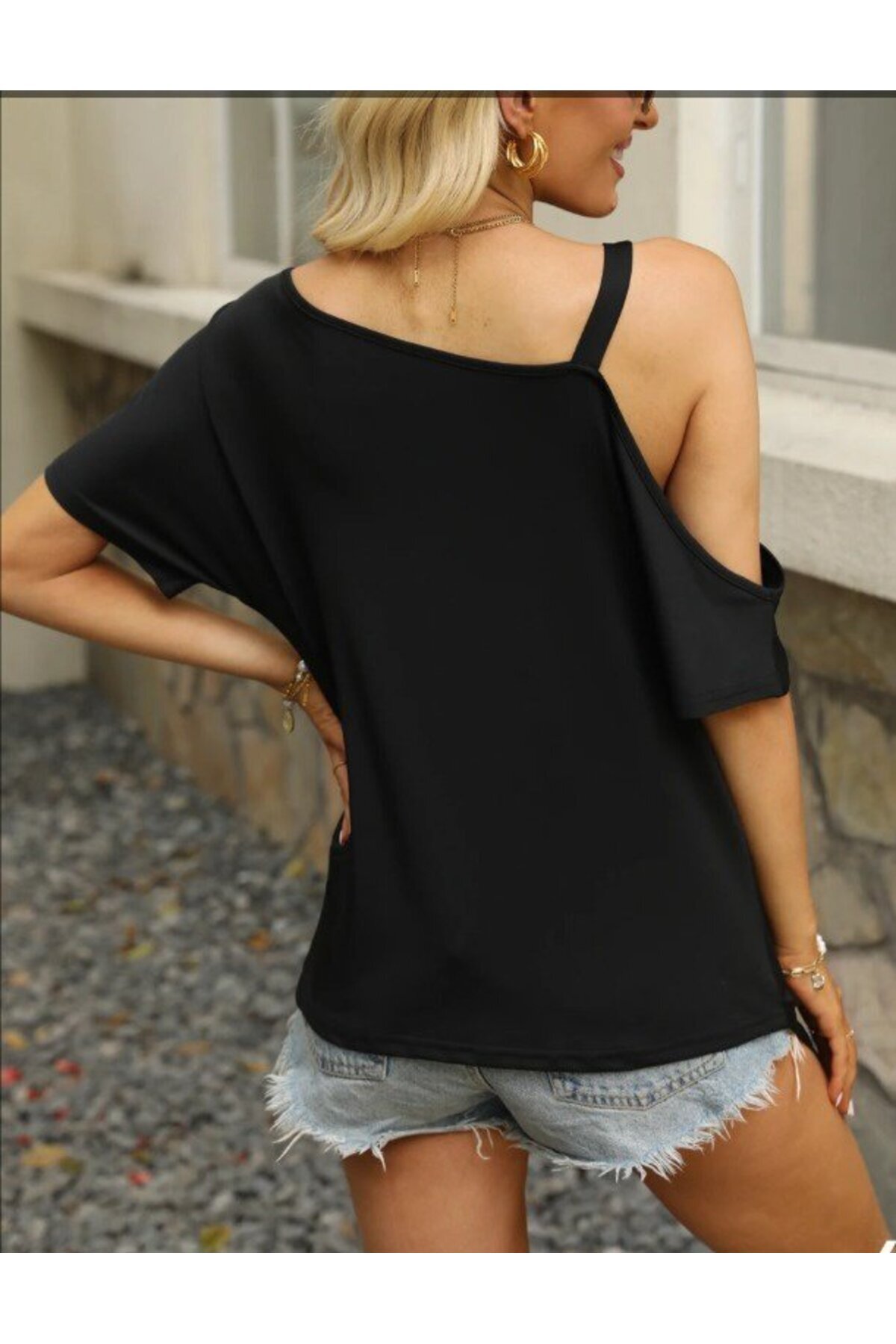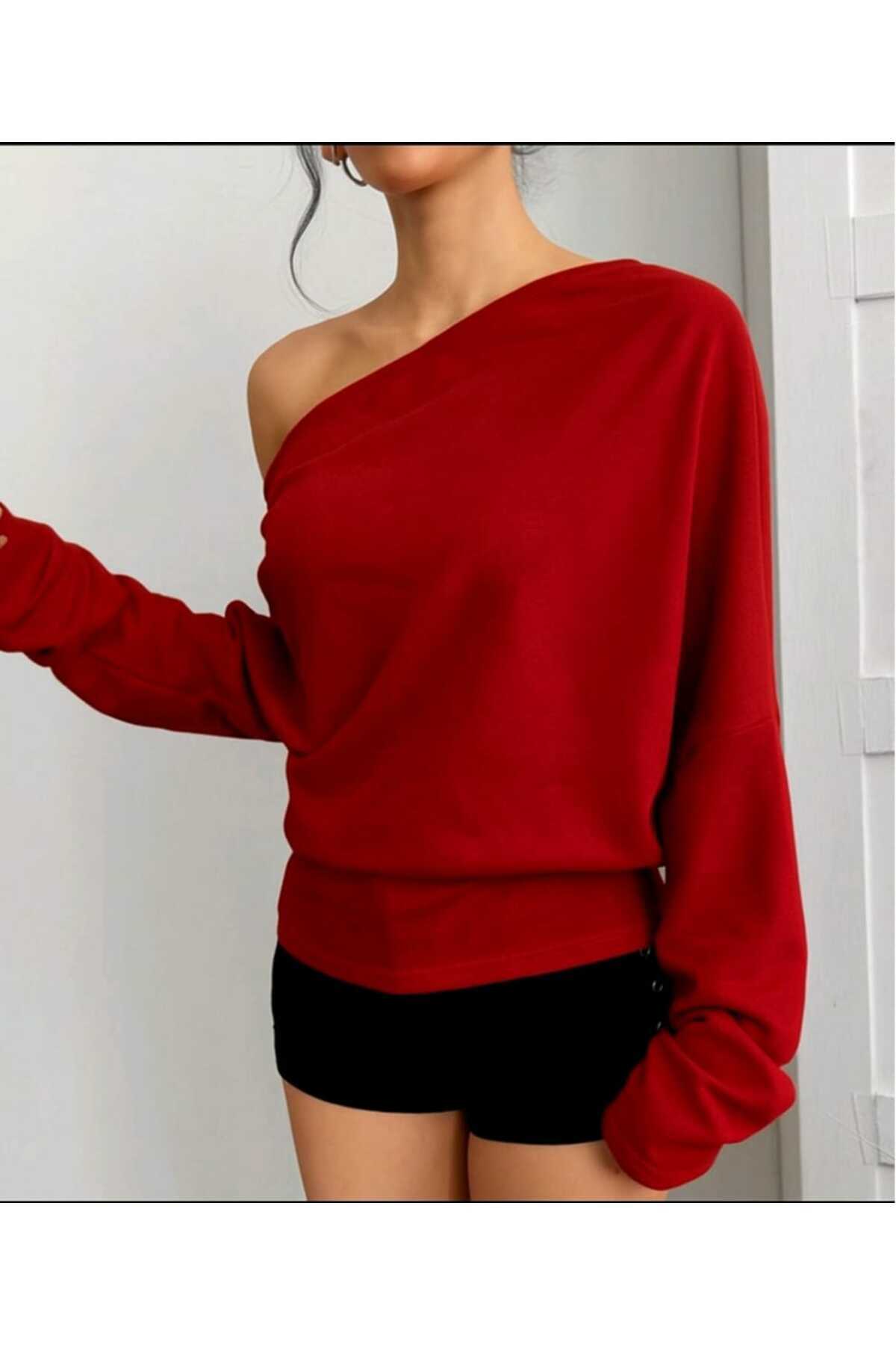 Kadın Tek Omuzu Açık Toka Detaylı Viskon Bluz Kadın Tek Omuzu Açık Toka Detaylı Viskon Bluz KH-688b0f8957730 2XL-3XL