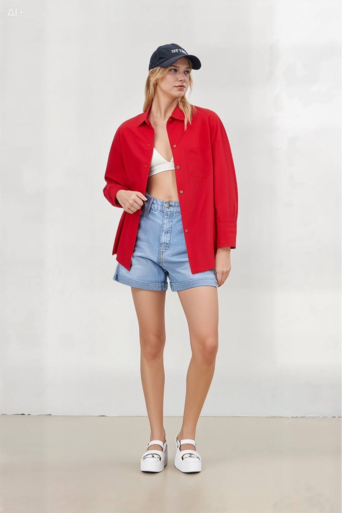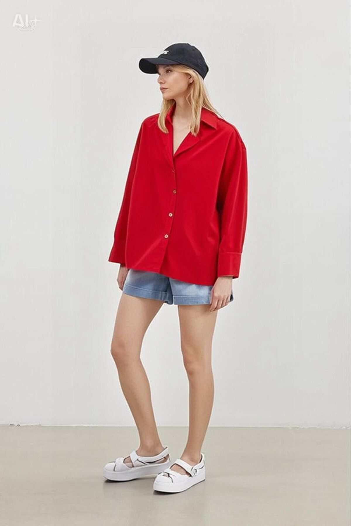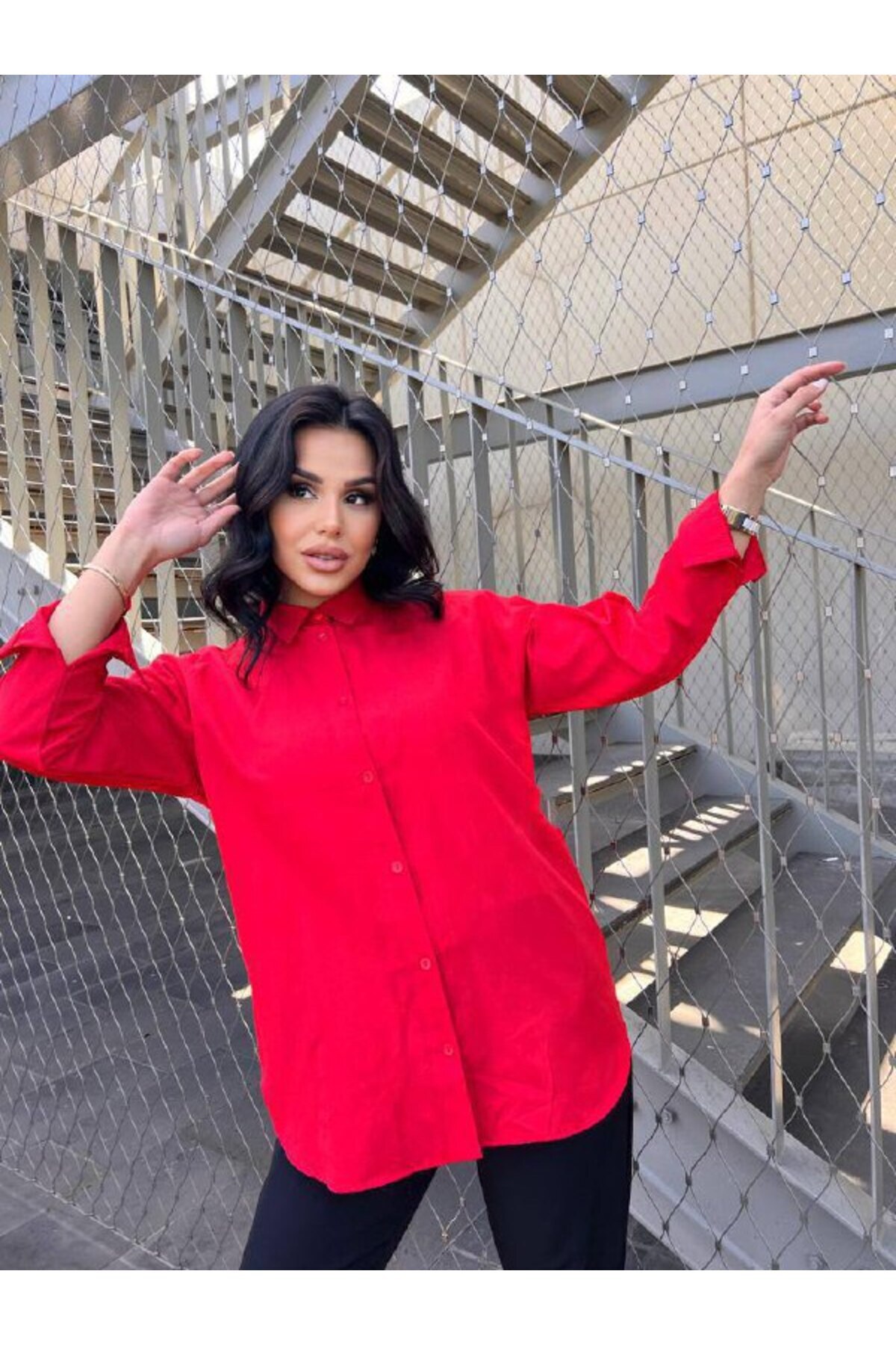 Kadın Kırmızı Oversize Uzun Basic Gömlek YS22K-HZ13900102 Kadın Kırmızı Oversize Uzun Basic Gömlek YS22K-HZ13900102 50