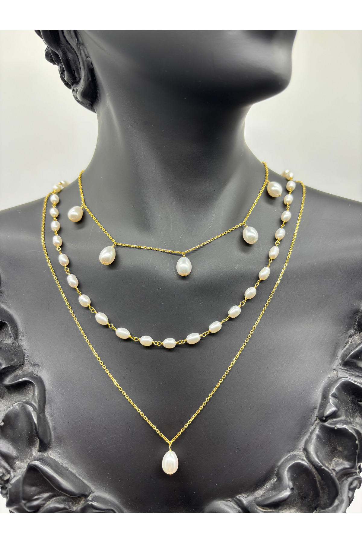 Doğal İnci Üçlü Kolye Set Doğal İnci Üçlü Kolye Set Z122799Z117811Z134586 40 cm