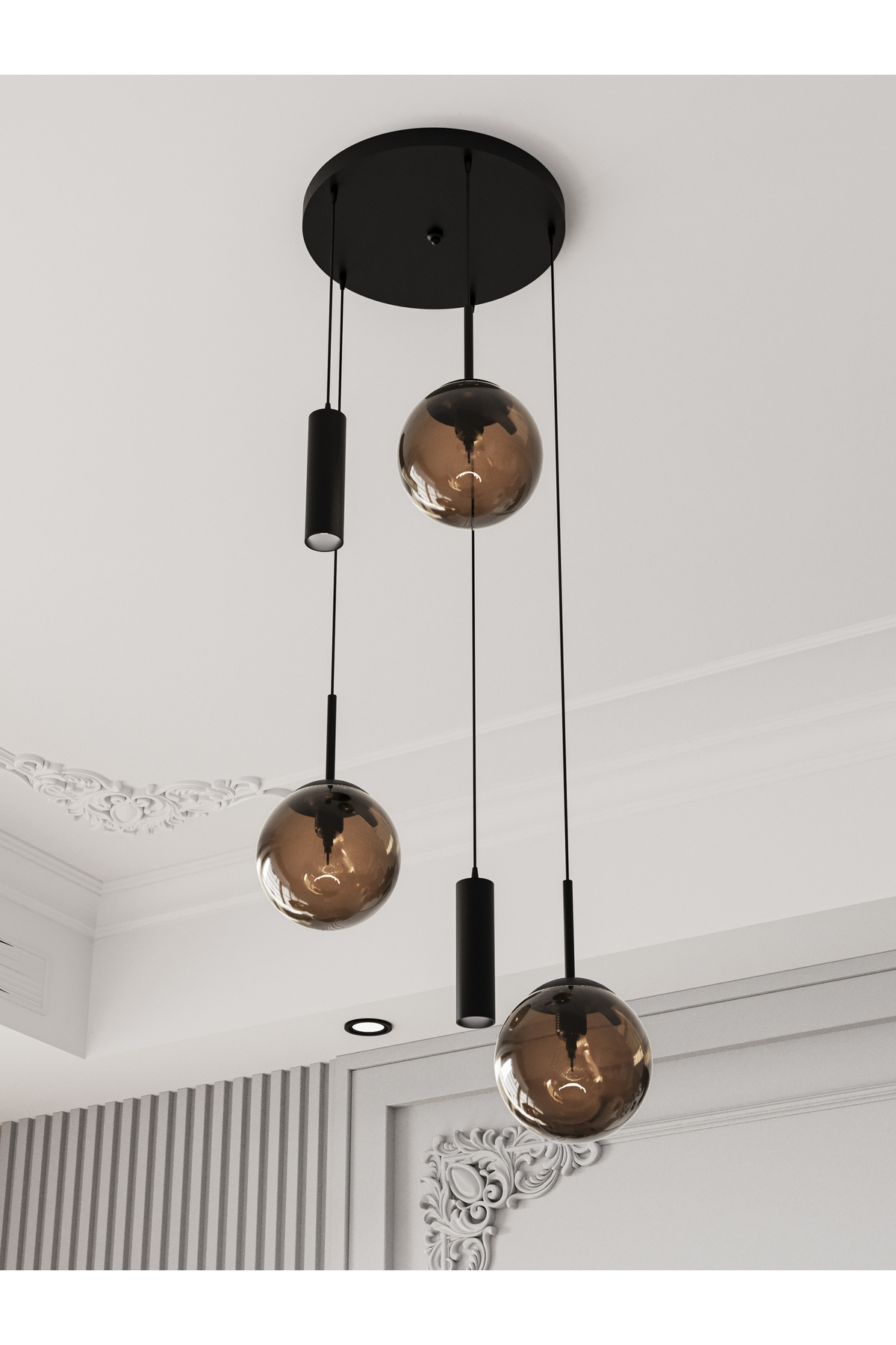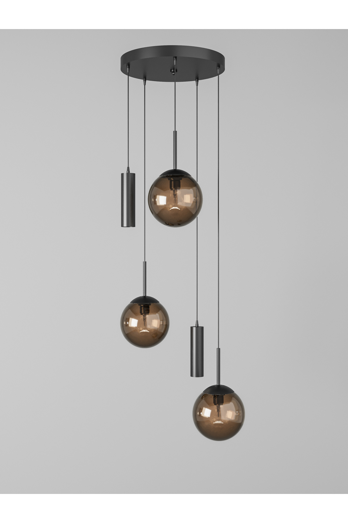 VİENNA Modern Siyah Metal Gövdeli 5'li Sarkıt Avize - 3 Bal Cam Küre 2 Led Spot, E27 Duy-G10 Duy VİENNA Modern Siyah Metal Gövdeli 5'li Sarkıt Avize - 3 Bal Cam Küre 2 Led Spot, E27 Duy-G10 Duy تک سایز