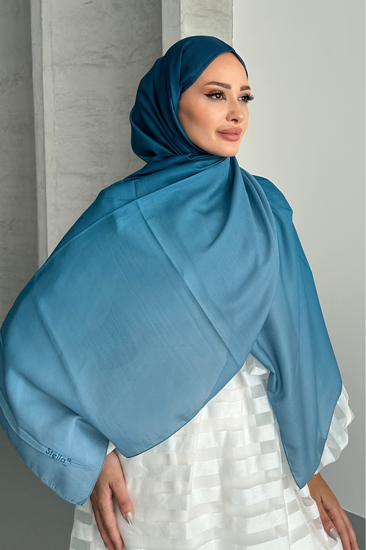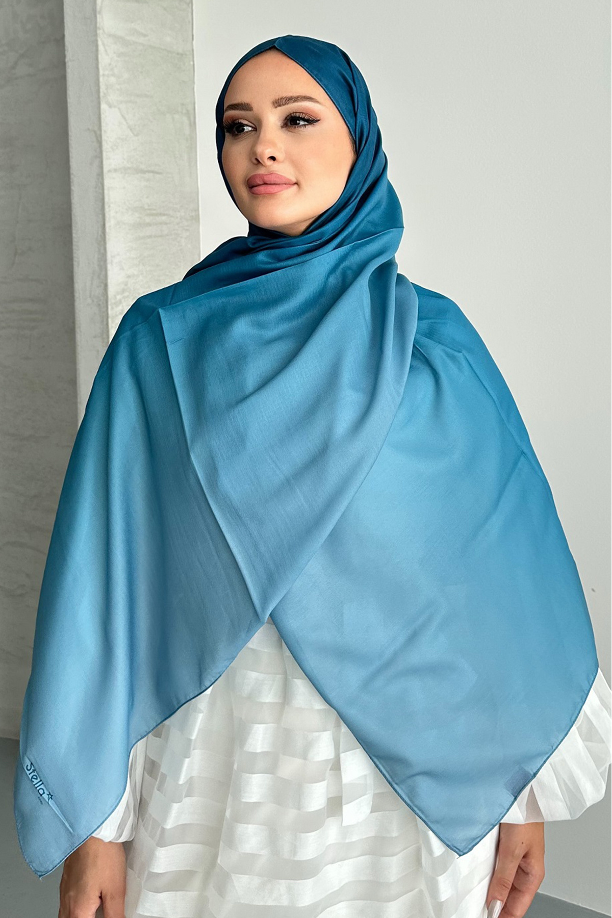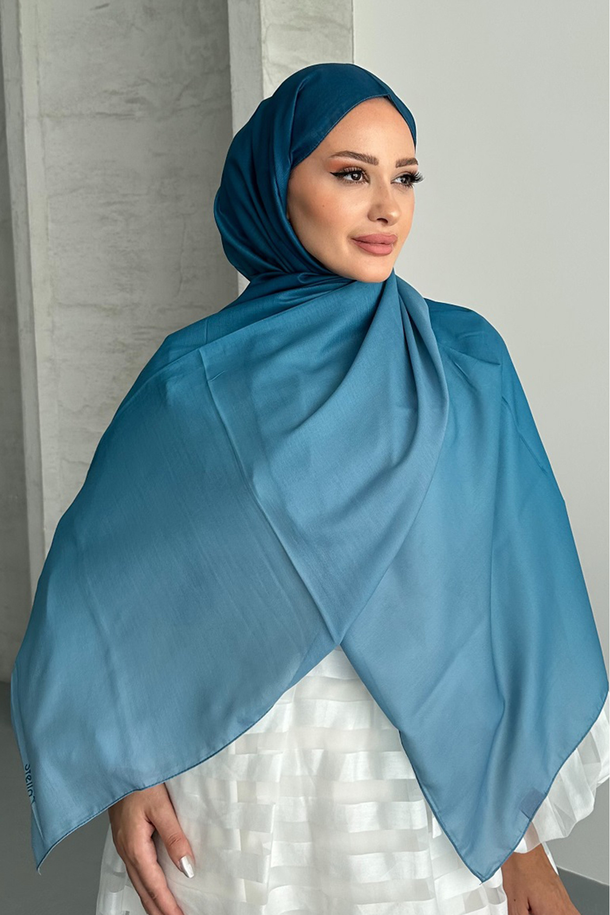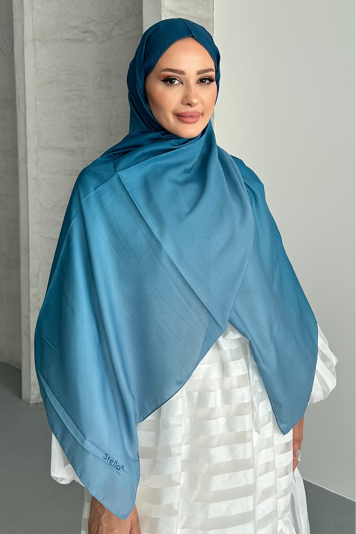 Aural İndigo Renk Degrade Desen Soft Pamuk Şal Aural İndigo Renk Degrade Desen Soft Pamuk Şal Degrade01 75 x 190