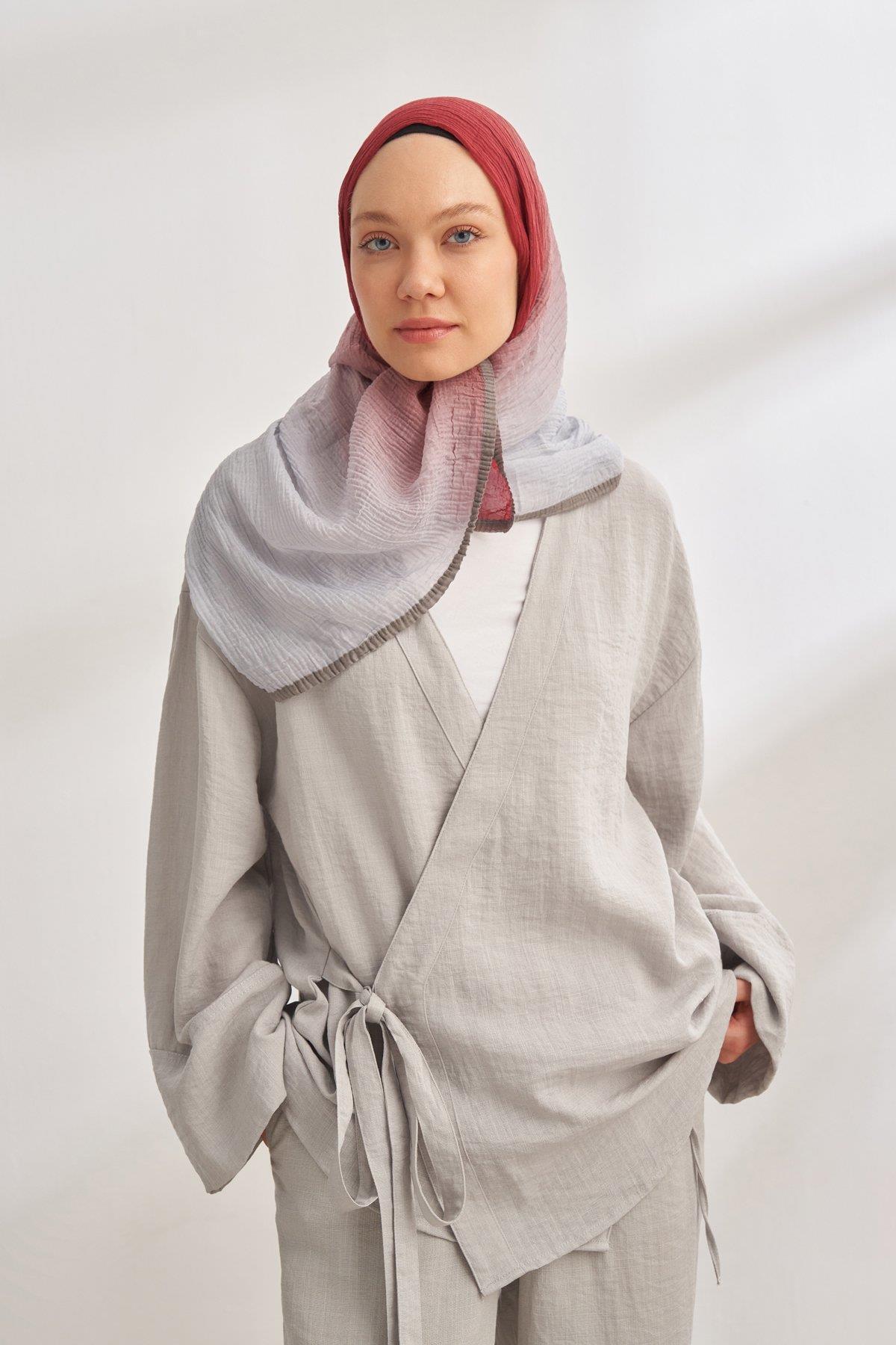 MÜSLİN DEGRADE BİYELİ ŞAL - KIRMIZI MÜSLİN DEGRADE BİYELİ ŞAL - KIRMIZI 3359 90 x 200