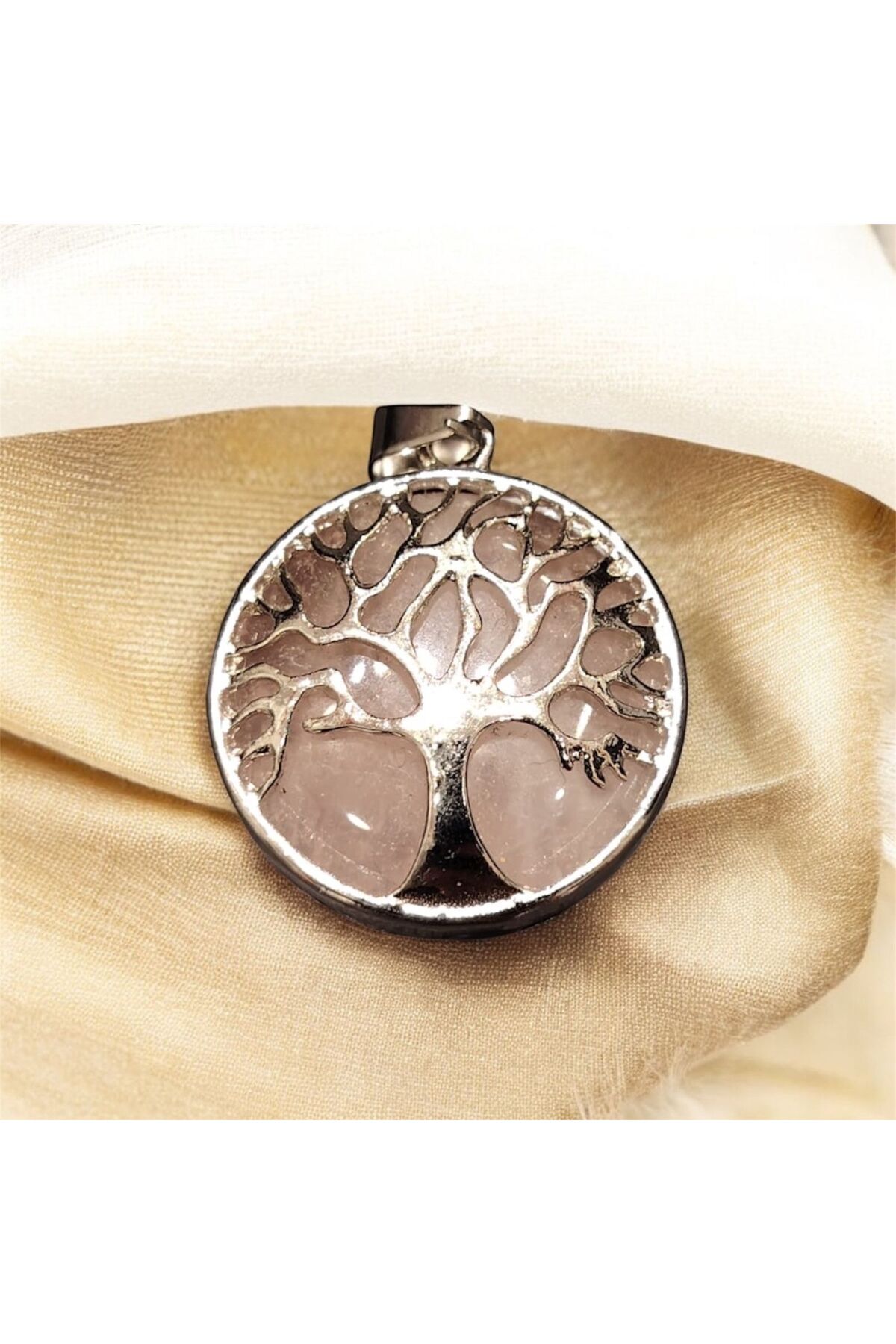 Pembe Kuvars Doğal Taş Hayat Ağacı Çelik Kolye Pembe Kuvars Doğal Taş Hayat Ağacı Çelik Kolye HA-PK1 Standart