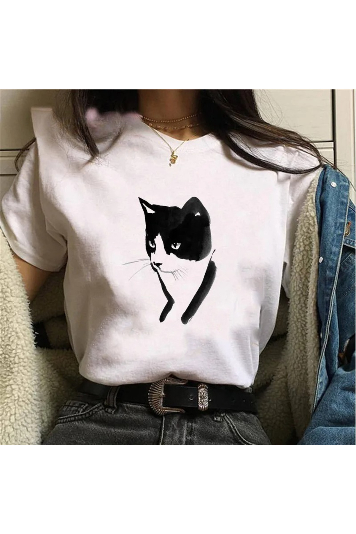 Siyah Güzel kedi lar için siyah kedi baskı harajuku lar için Siyah Güzel kedi lar için siyah kedi baskı harajuku lar için RONTWE -3124 XL