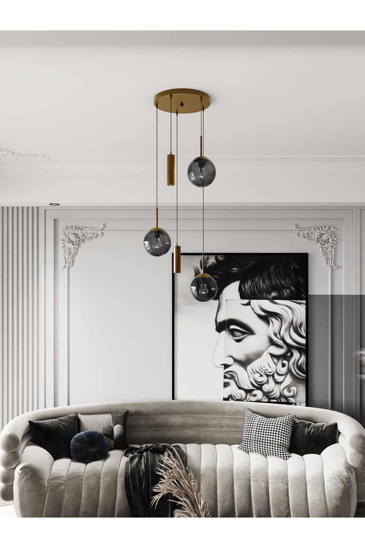 VİENNA Modern Eskitme Metal Gövdeli 5'li Sarkıt Avize - 3 Beyaz Cam Küre 2 Led Spot, E27 Duy-G10 Duy VİENNA Modern Eskitme Metal Gövdeli 5'li Sarkıt Avize - 3 Beyaz Cam Küre 2 Led Spot, E27 Duy-G10 Duy تک سایز