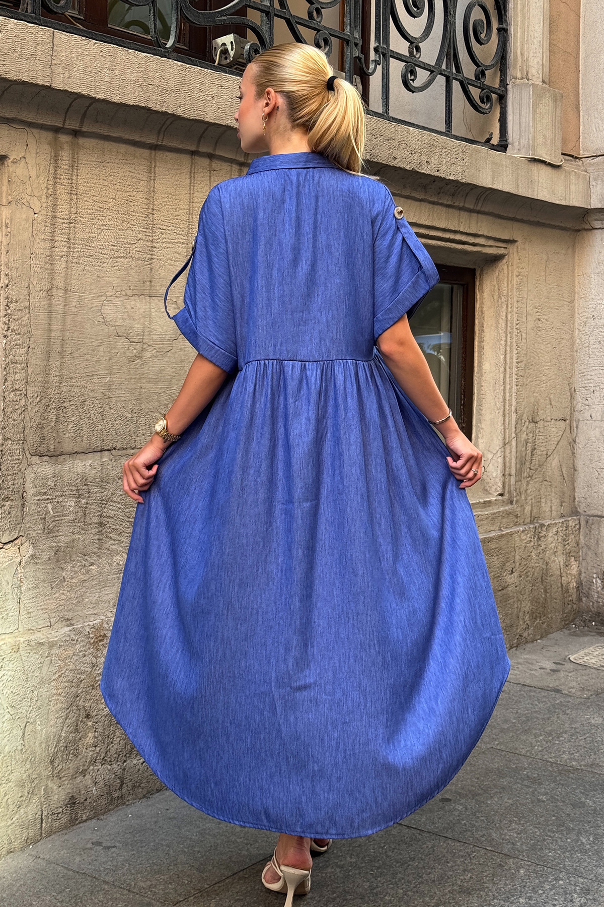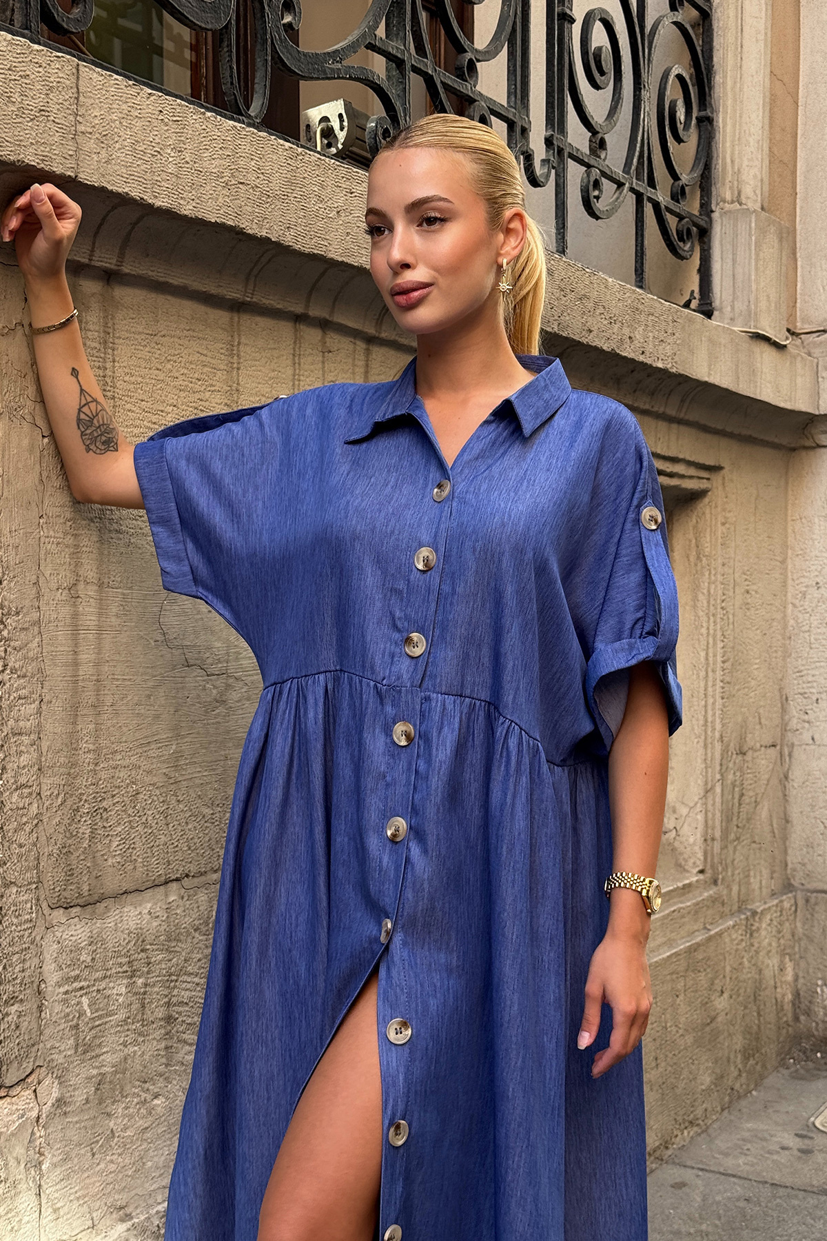 ALAÇATI STİLİ Kadın Koyu Mavi Kısa Kollu Düğme Detaylı Midi Boy Gömlek Elbise Vs00735 ALAÇATI STİLİ Kadın Koyu Mavi Kısa Kollu Düğme Detaylı Midi Boy Gömlek Elbise Vs00735 VS00735 42