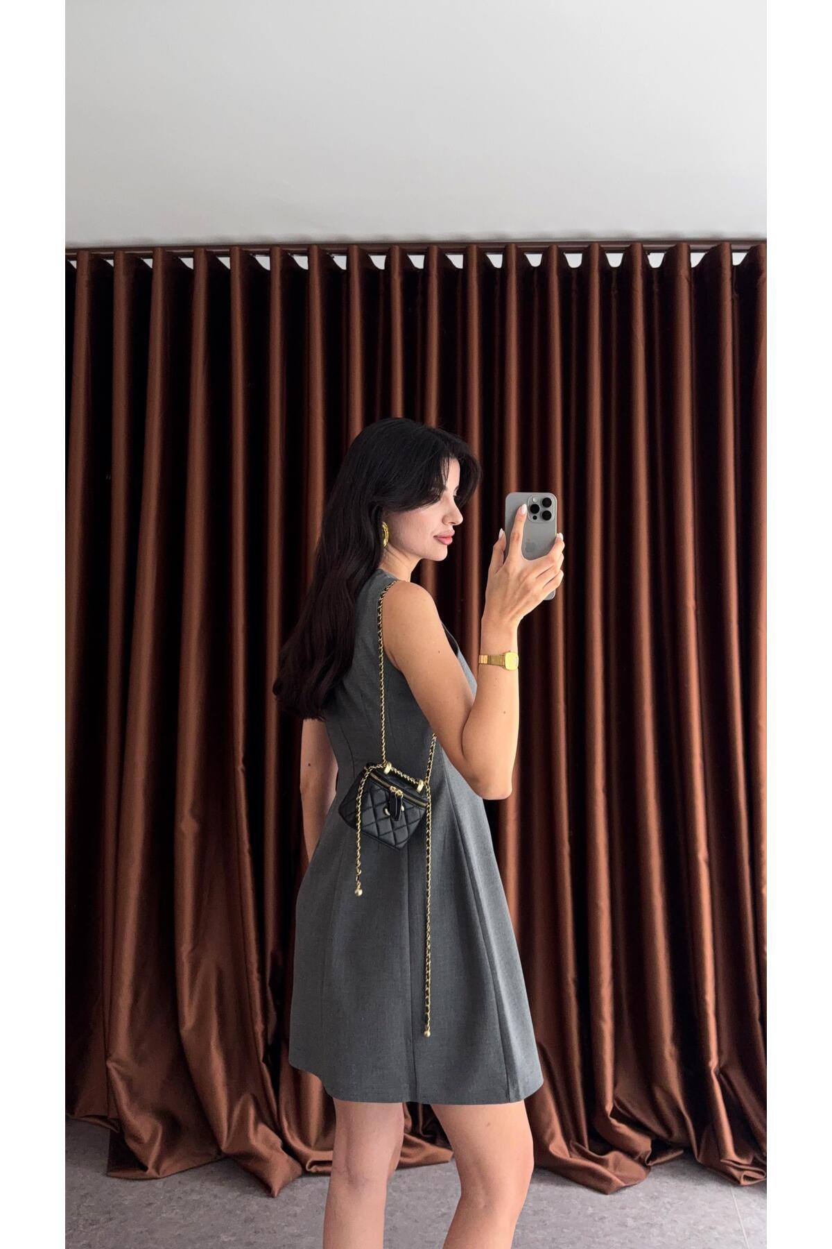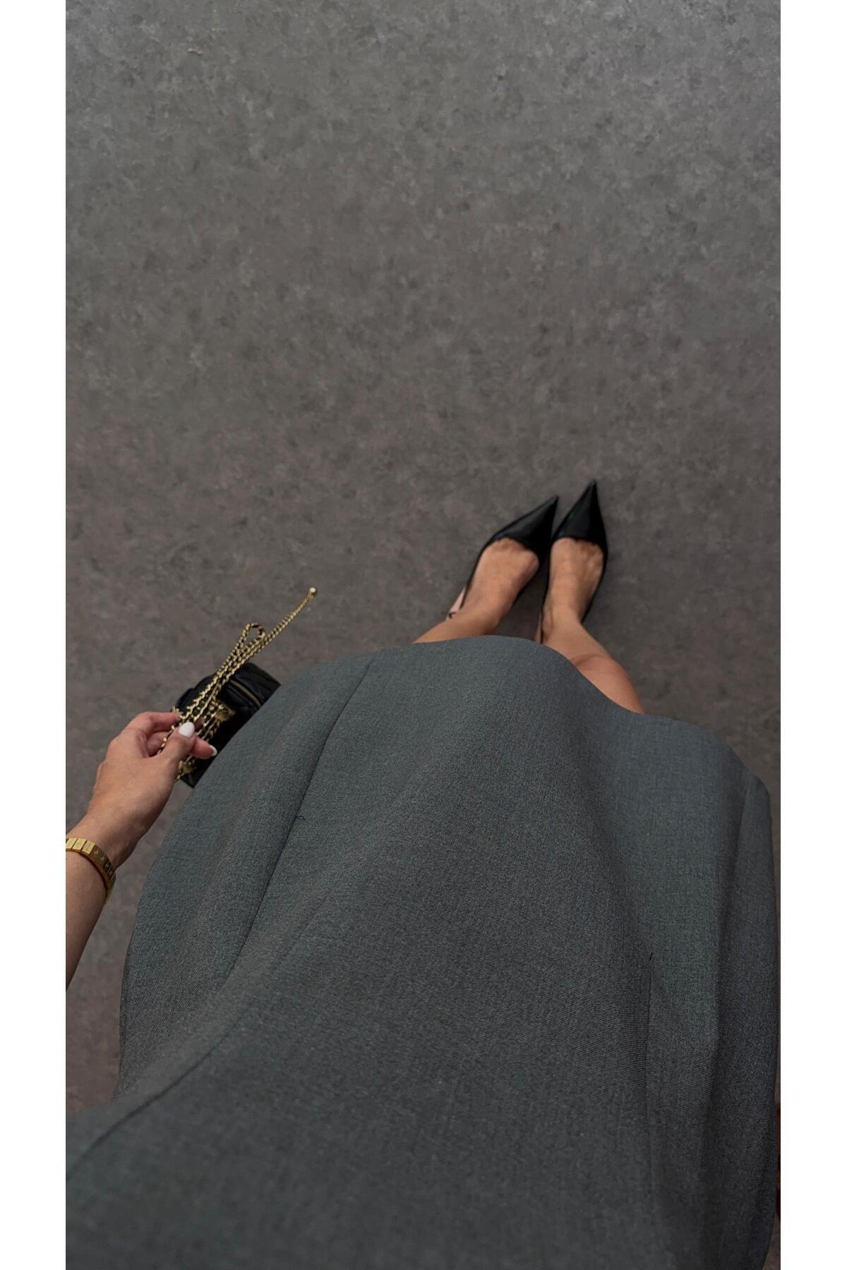 Sıfır Yaka Antrasit Balon Elbise Sıfır Yaka Antrasit Balon Elbise 11765 XL