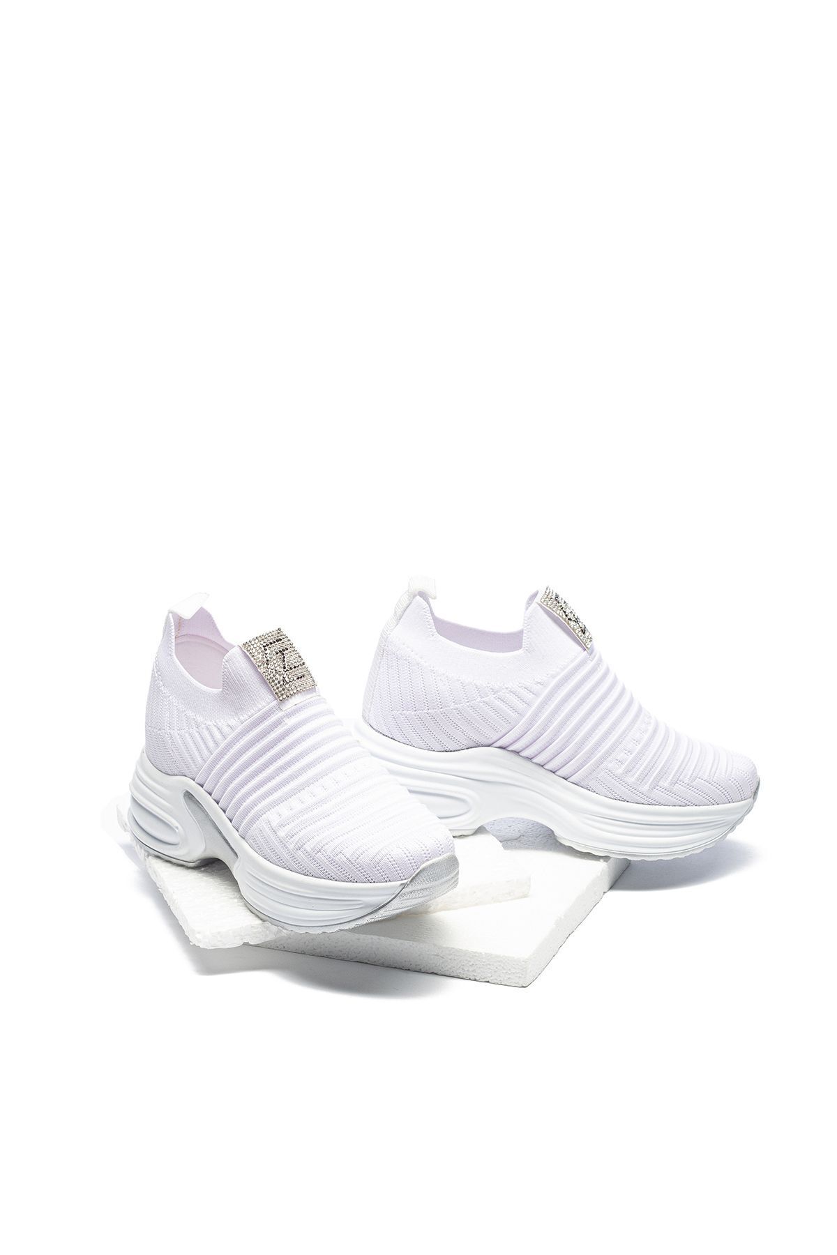 Kadın Gizli Topuk Taşlı Rahat Kalıp Triko Spor Ayakkabı Beyaz Kadın Gizli Topuk Taşlı Rahat Kalıp Triko Spor Ayakkabı Beyaz RYNBOOT0000403 40