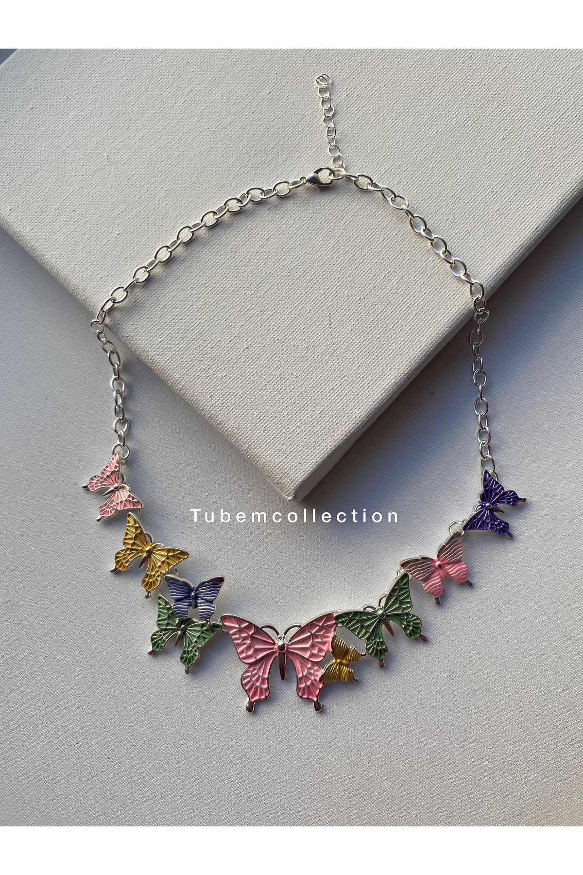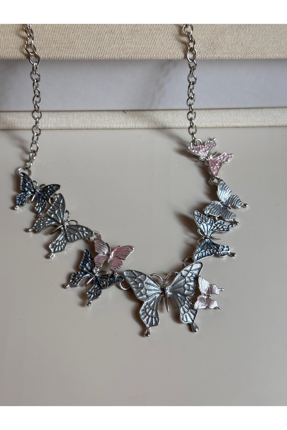 Gümüş Renk Renkli Kelebek Figürlü Kadın Kolye – Zarif ve Şık Tasarım Gümüş Renk Renkli Kelebek Figürlü Kadın Kolye – Zarif ve Şık Tasarım R-45ÖGDFEX Standart
