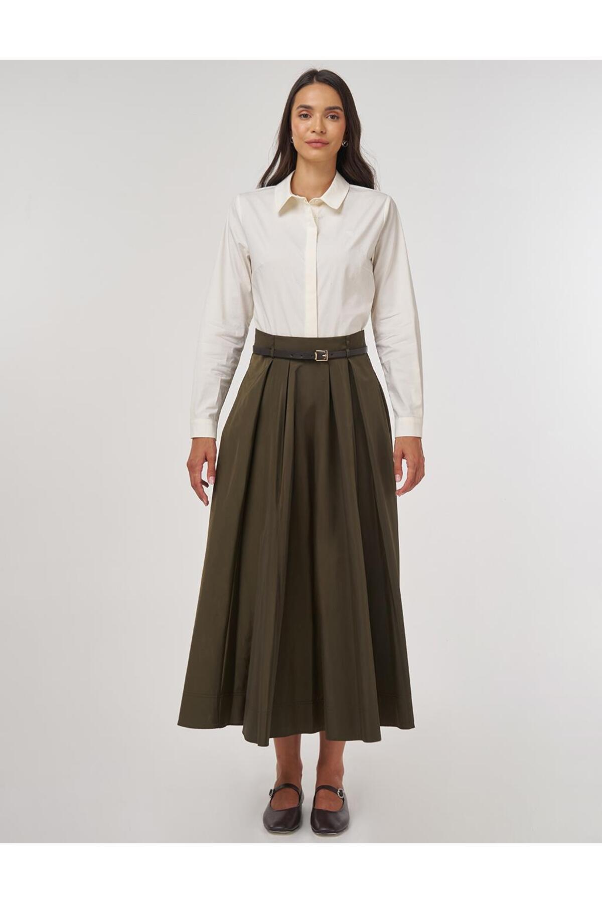 Kemer Detaylı Kloş Etek Bronz Haki Kemer Detaylı Kloş Etek Bronz Haki KA-A25-12001 40