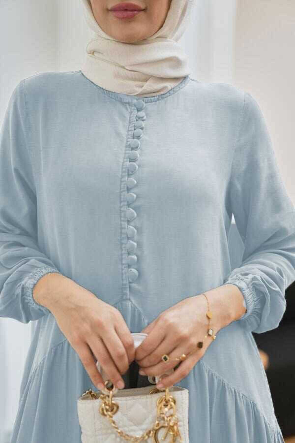 6646- Britli Düğmeli Büzgülü Elbise Mavi 6646- Britli Düğmeli Büzgülü Elbise Mavi bed9-3167 46