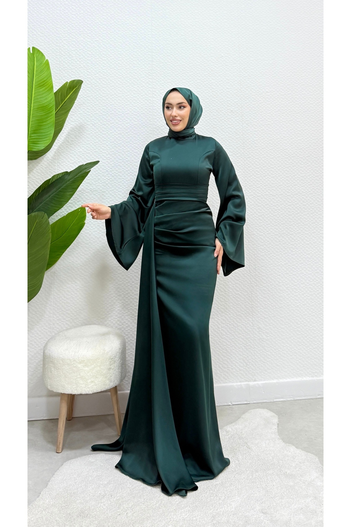İspanyol Kol Kuyruklu Saten Tesettür Abiye İspanyol Kol Kuyruklu Saten Tesettür Abiye kubraramazan55 44