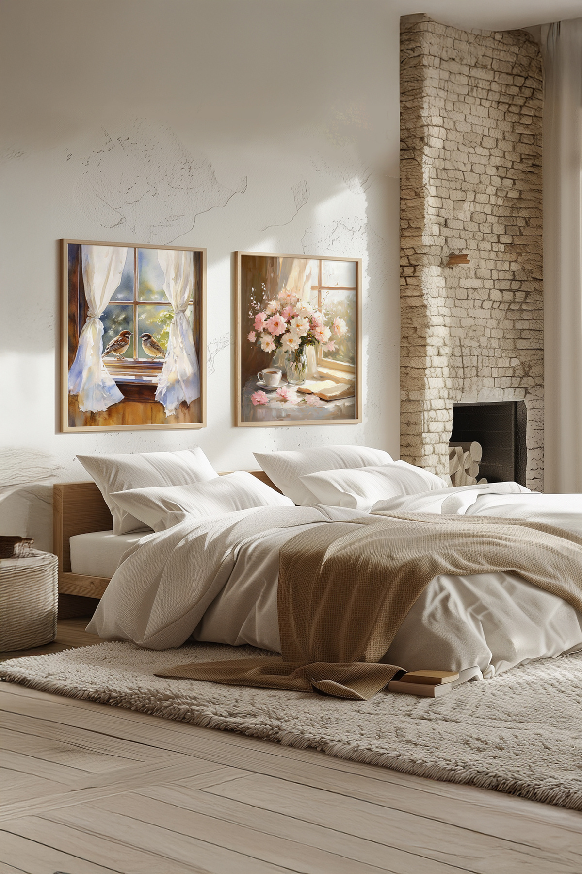 Ahşap çerçeveli Yağlı boya efektli kuşlu çiçekli romantik 2'li tablo seti Yuna241 Ahşap çerçeveli Yağlı boya efektli kuşlu çiçekli romantik 2'li tablo seti Yuna241 yuna241 50 x 70