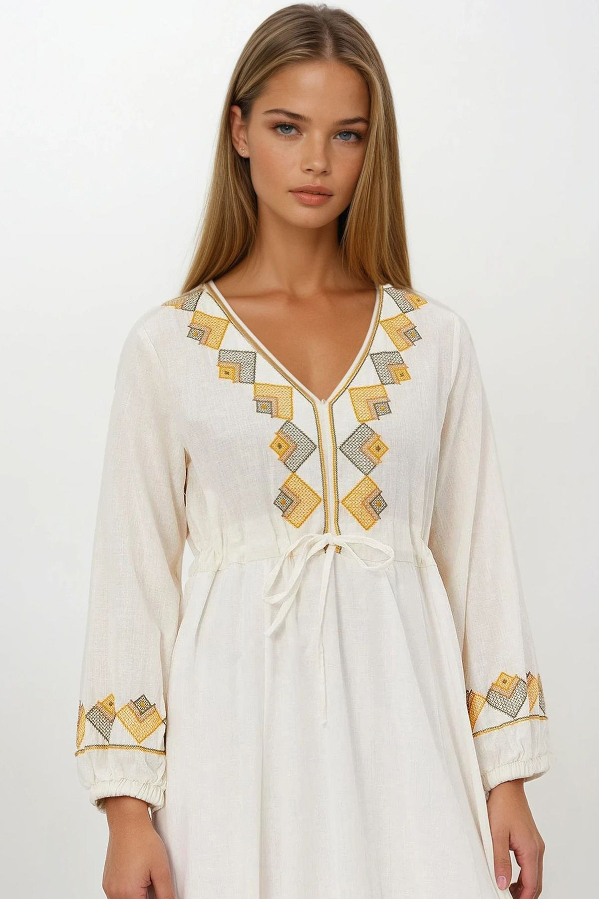 Kadın Beyaz V Yaka Etnik Desenli Midi Boy Elbise Vs00412 Kadın Beyaz V Yaka Etnik Desenli Midi Boy Elbise Vs00412 VS00412 L