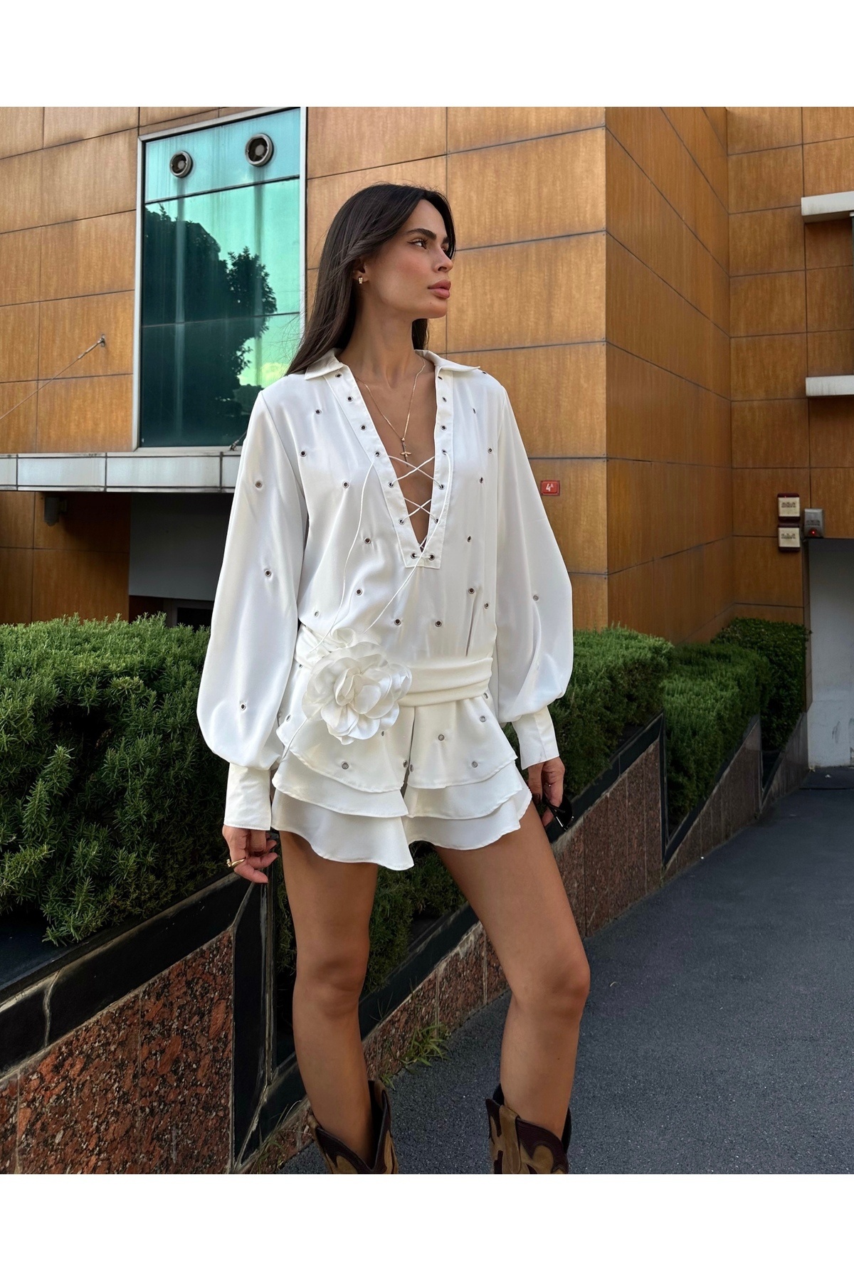 Kadın İnci Detaylı Volanlı Mini Elbise Kadın İnci Detaylı Volanlı Mini Elbise FM9590 L