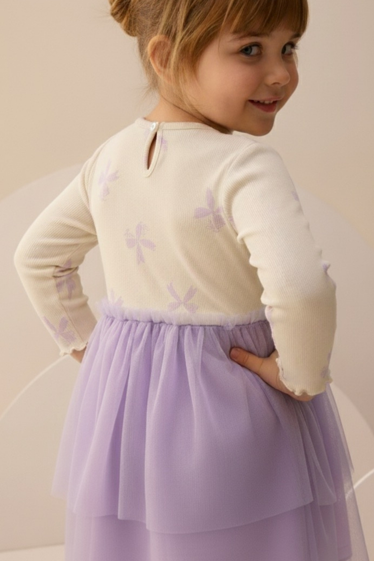 Simli Baskılı Tüllü Kız Çocuk Elbise Simli Baskılı Tüllü Kız Çocuk Elbise 25515 6 Yaş