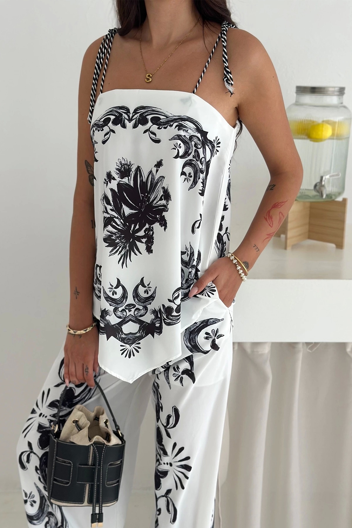 İthal Jessica Kumaş Desenli İkili Takım Siyah İthal Jessica Kumaş Desenli İkili Takım Siyah FYSNCAUW8W XL