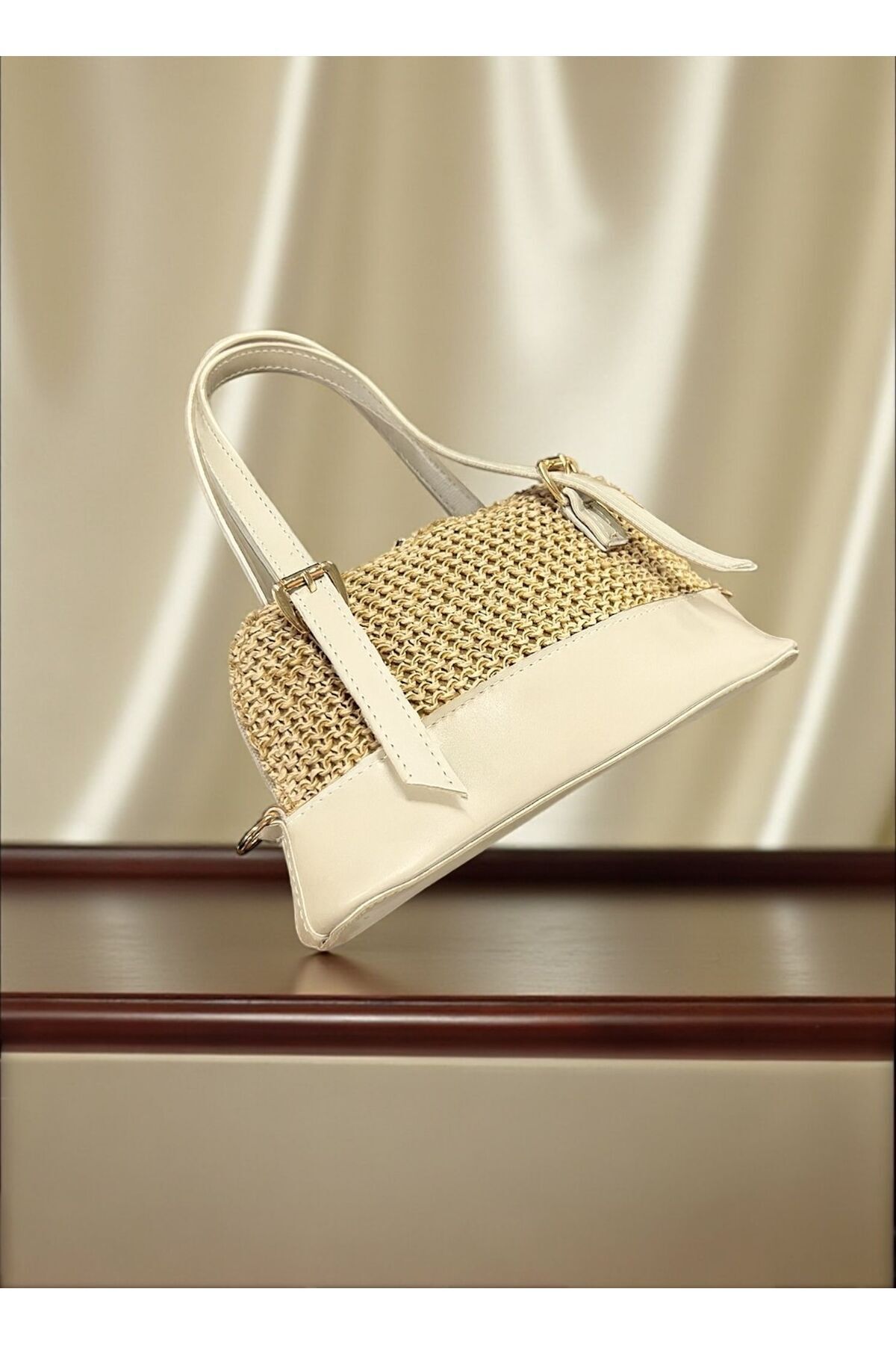 Kadın Örgü Dokulu Özel Tasarım Kremrengi Baget Çanta Kadın Örgü Dokulu Özel Tasarım Kremrengi Baget Çanta BNC5899knc Standart