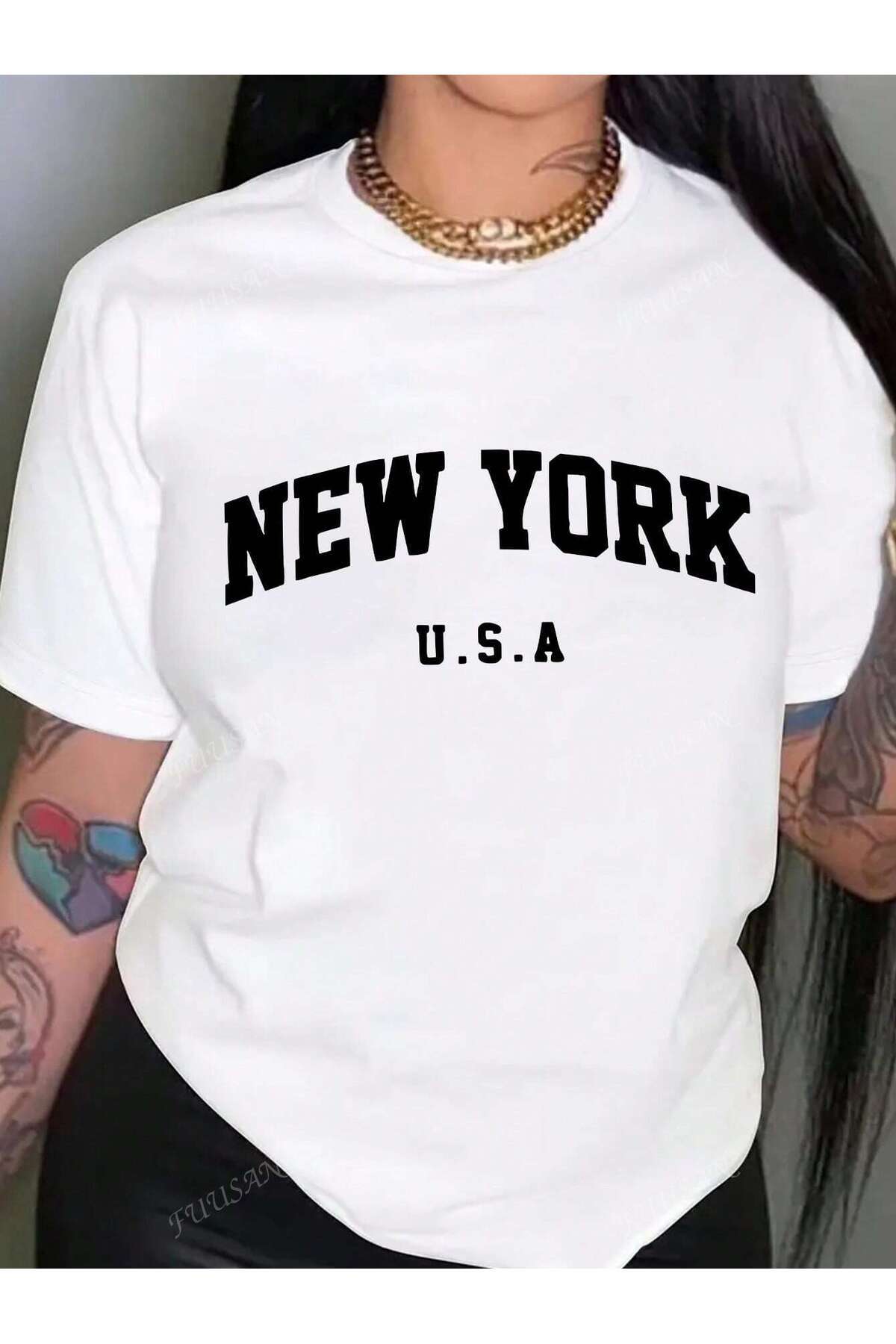 New York USA Dijital Baskılı %100 Pamuk Oversize Komik Fancy Tshirt Tişört New York USA Dijital Baskılı %100 Pamuk Oversize Komik Fancy Tshirt Tişört newyorkbeyaz- XL