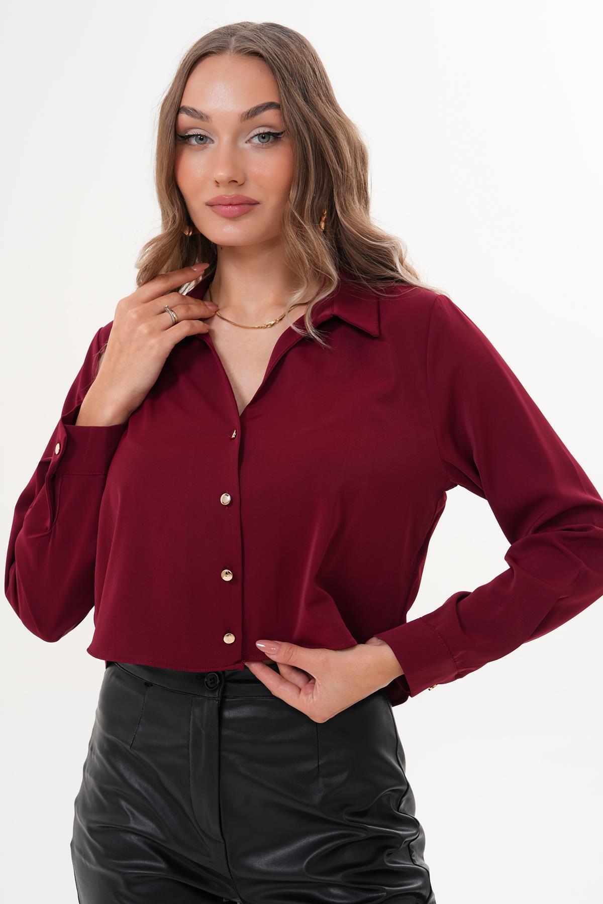 Kadın Düğmeli Kısa Salaş Gömlek 255230 - Kadın Düğmeli Kısa Salaş Gömlek 255230 - 230364 42