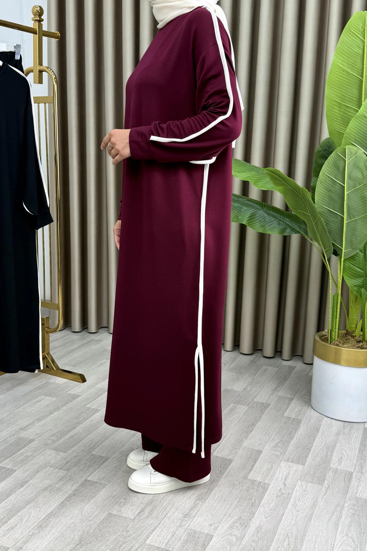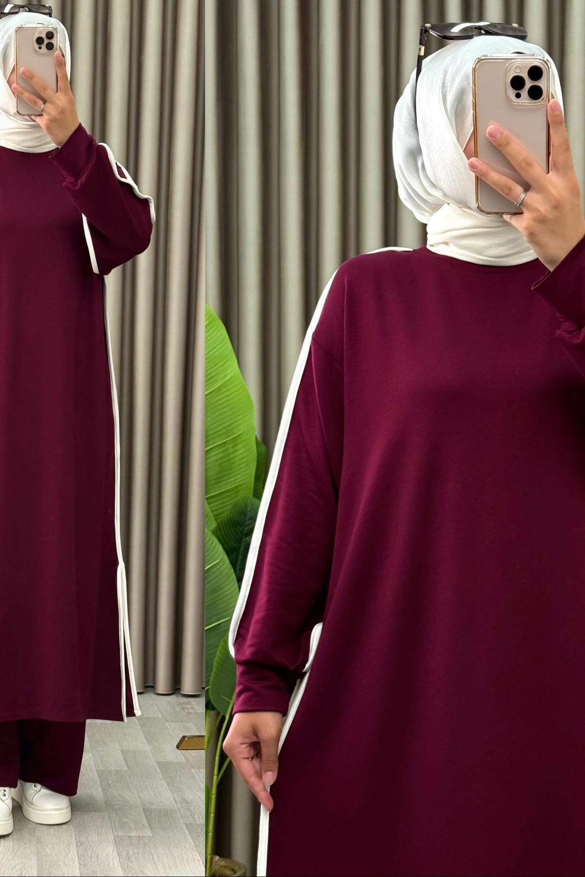 ZÜHRE TAKIM Bordo Beyaz Şerit Detaylı Tesettür İkili Takım Rahat Kesim Spor ZÜHRE TAKIM Bordo Beyaz Şerit Detaylı Tesettür İkili Takım Rahat Kesim Spor 78/1737 54