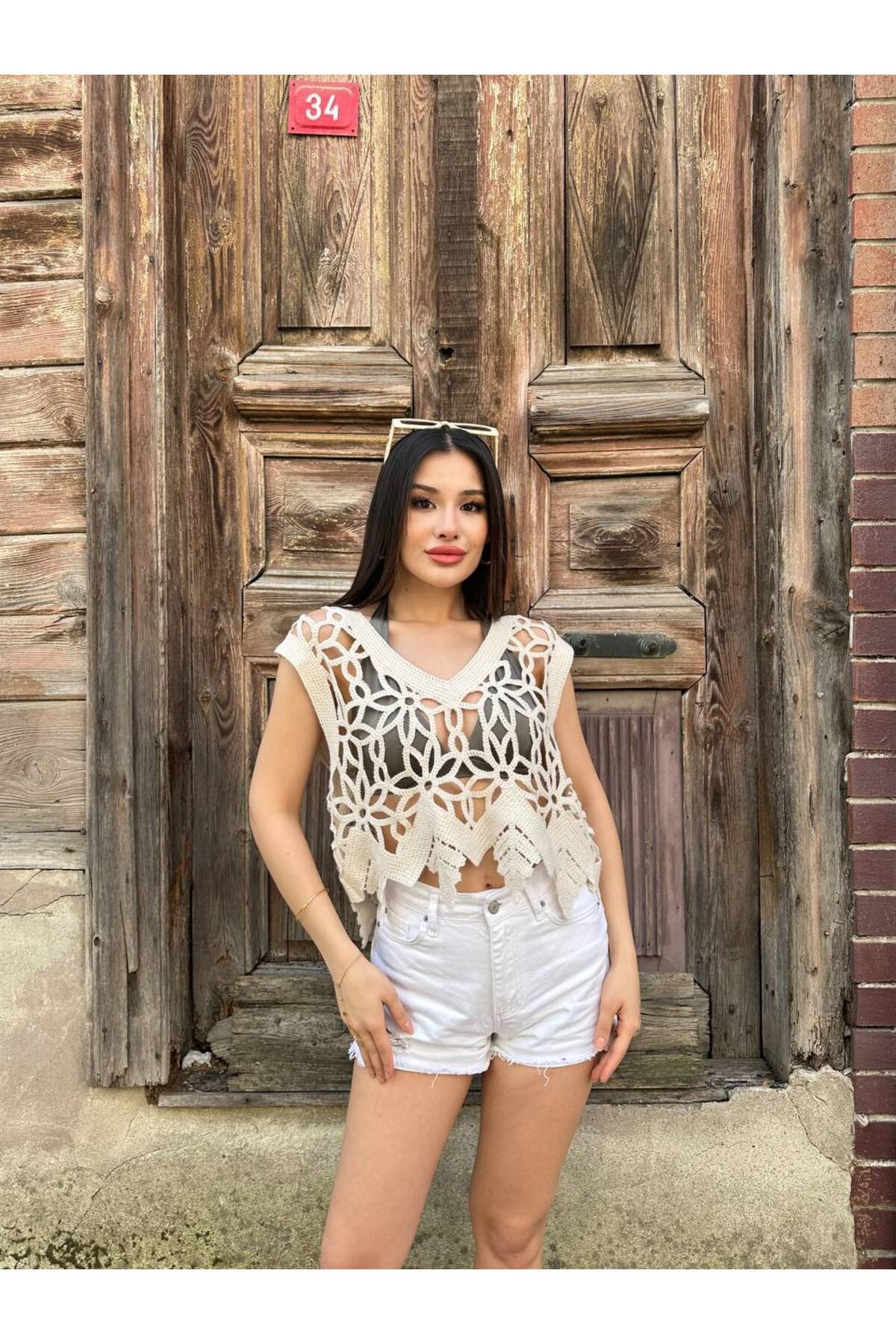Tığ İşi Çiçek Desenli Yazlık Kolsuz Bluz Tığ İşi Çiçek Desenli Yazlık Kolsuz Bluz FIORA-TIGCICEK-004 Standart