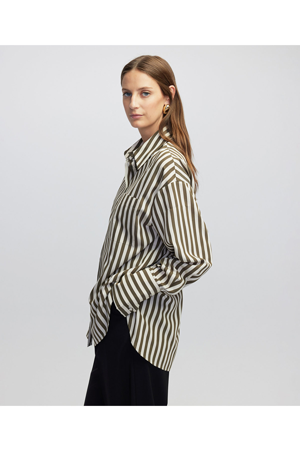 Çizgi desen düşük omuz gömlek Çizgi desen düşük omuz gömlek IW6250025093176 44