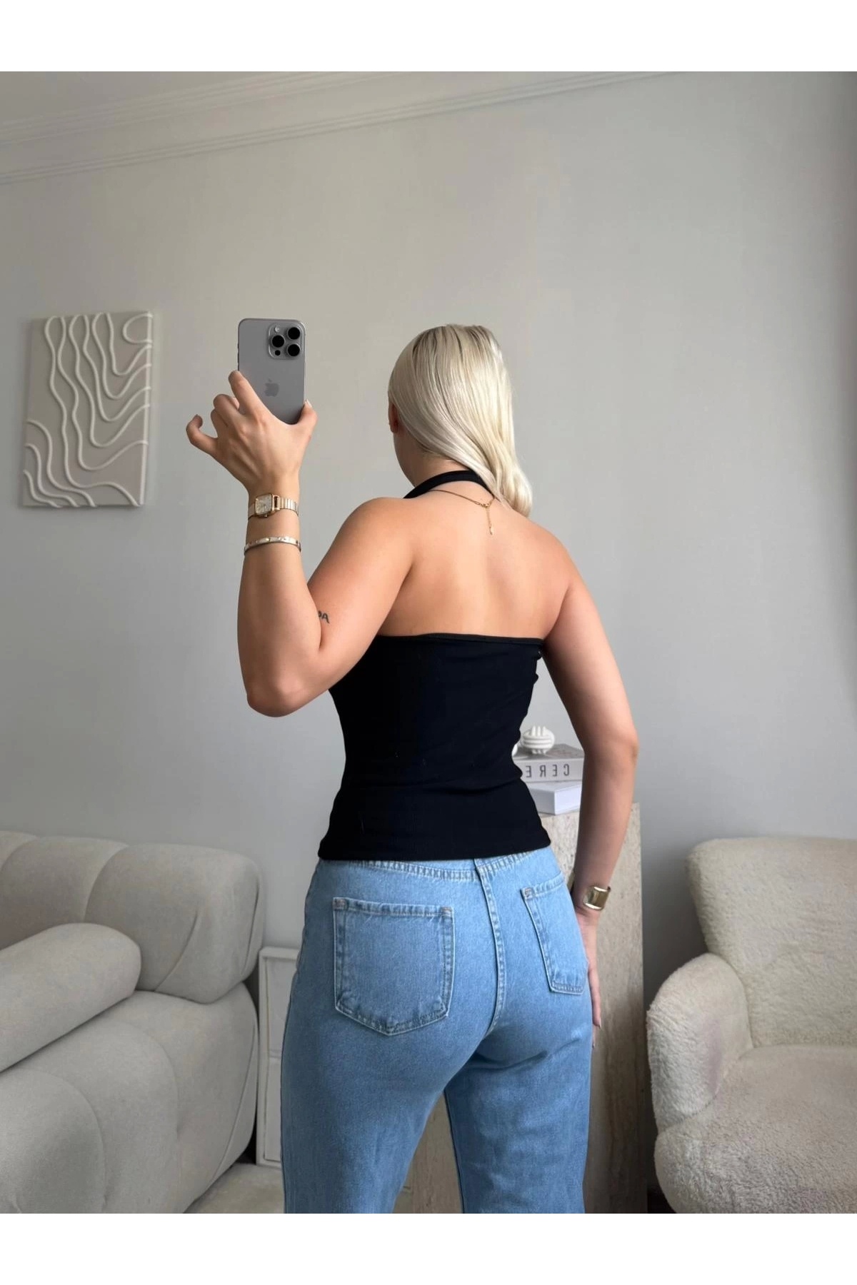 Boyun Geçmeli Aksesuar Crop - SİYAH Boyun Geçmeli Aksesuar Crop - SİYAH P3312S4687 XL