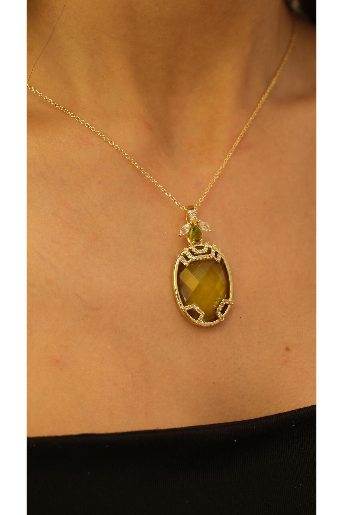 Gold Renkli Kristal Oval Figür Arı Kolye Gold Renkli Kristal Oval Figür Arı Kolye BİJUMN01155 1