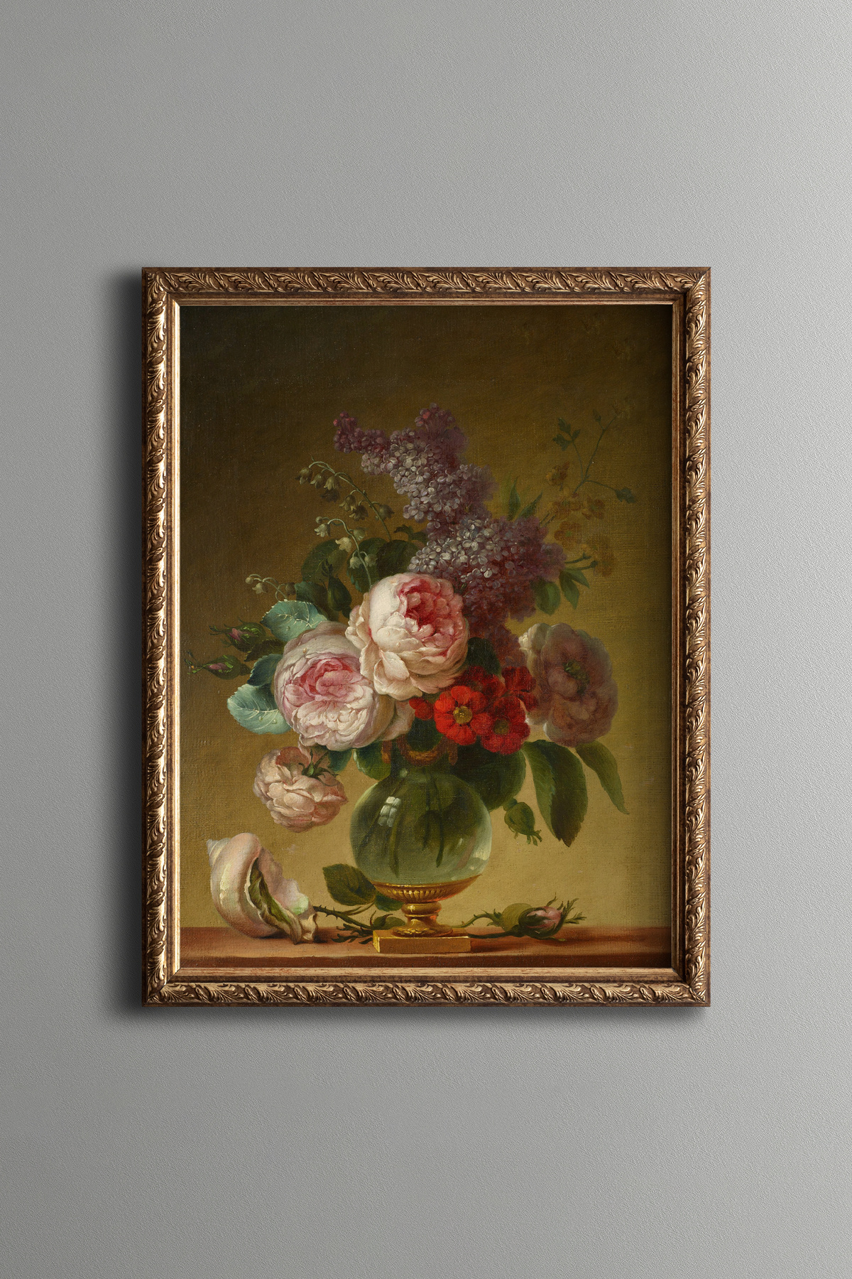 Vazoda Karışık Çiçek Buketi - Vintage Desenli Çerçeve Vazoda Karışık Çiçek Buketi - Vintage Desenli Çerçeve art00565 50 x 70