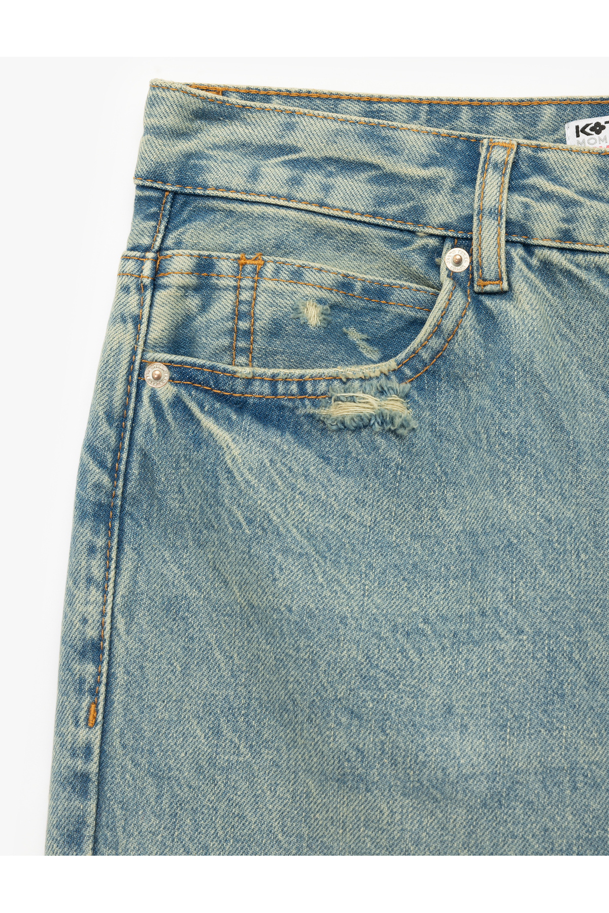Yüksek Bel Rahat Kalıp Yıpratılmış Zincir Detaylı Mom Jean Pantolon - Mom Slim Jean Yüksek Bel Rahat Kalıp Yıpratılmış Zincir Detaylı Mom Jean Pantolon - Mom Slim Jean 6WAL40039MD 29/32