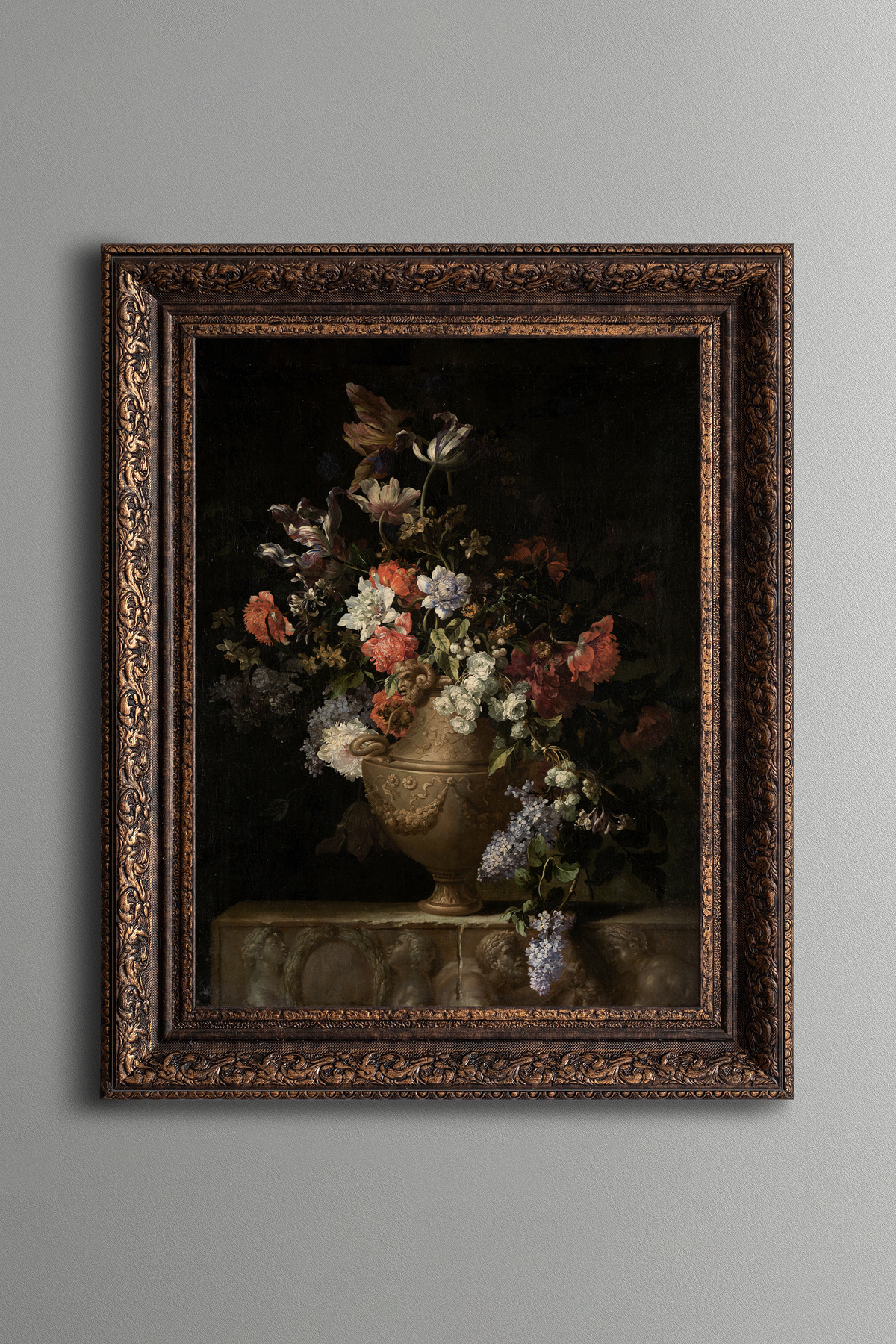 Vazodaki Çiçekler - Vintage Desenli Çerçeve Vazodaki Çiçekler - Vintage Desenli Çerçeve art00564 50 x 70