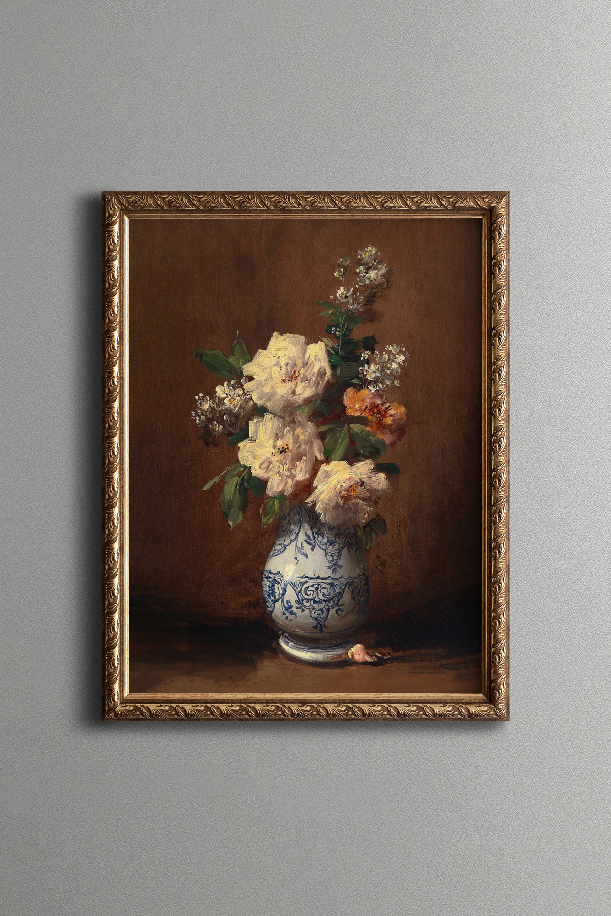 Çiçek Natürmort - Vintage Desenli Çerçeve Çiçek Natürmort - Vintage Desenli Çerçeve art00612 50 x 70