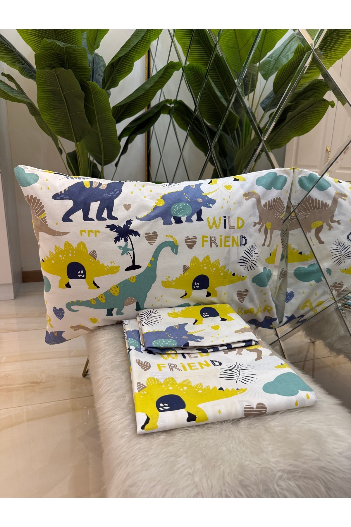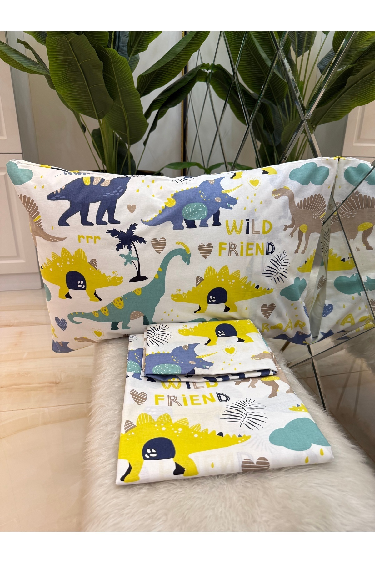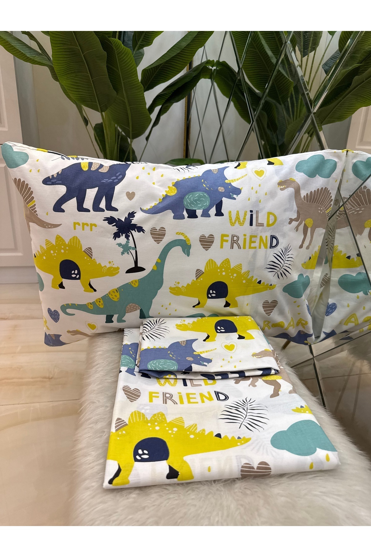 مشخصات فنی Desenli Tek Kişilik %100 Pamuk Lastiksiz Çarşaf Ve Yastık Kılıfı Set