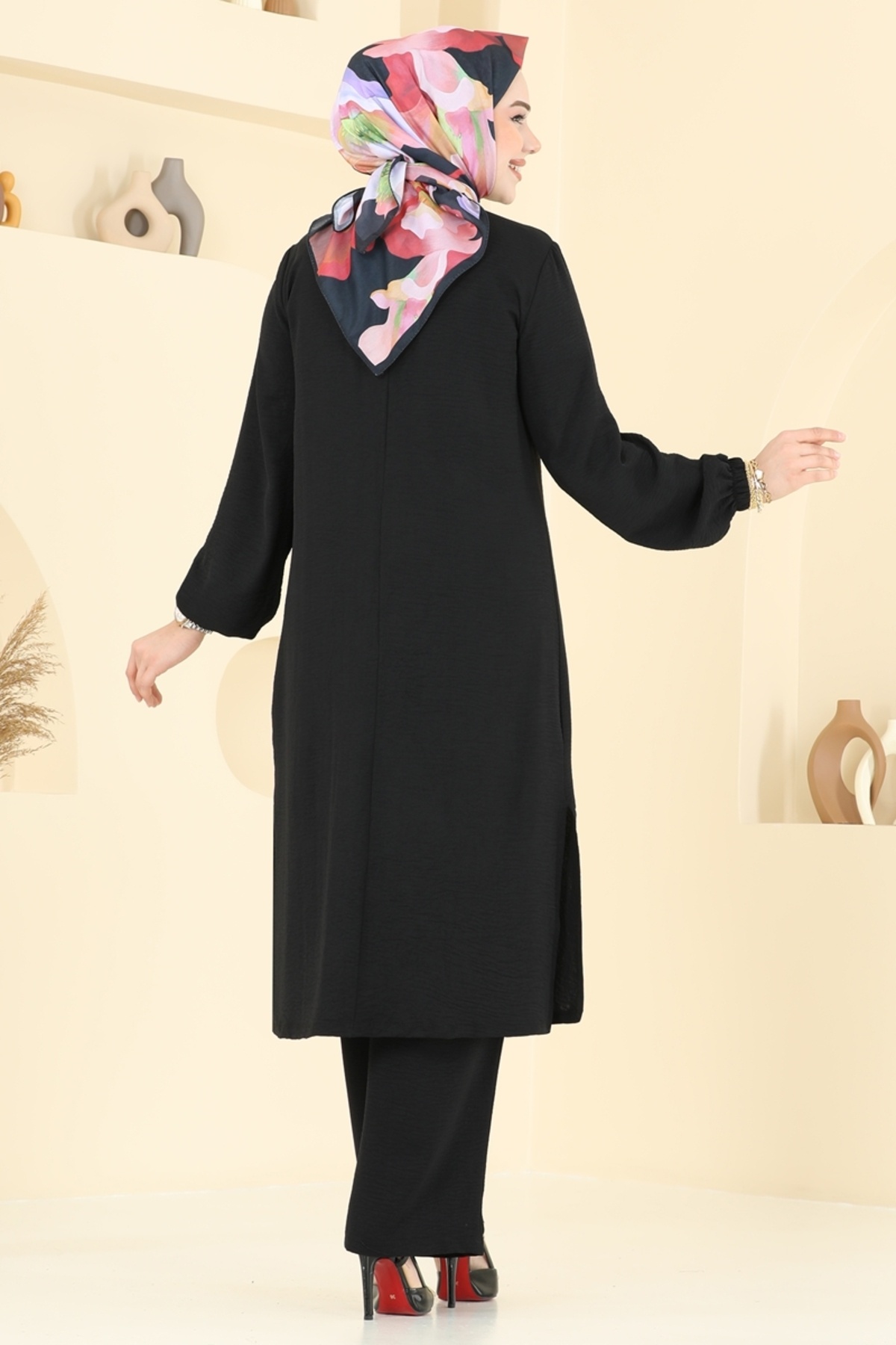 Manşeti Lastikli Tesettür Takım 2625SL432-MS Siyah Manşeti Lastikli Tesettür Takım 2625SL432-MS Siyah 54