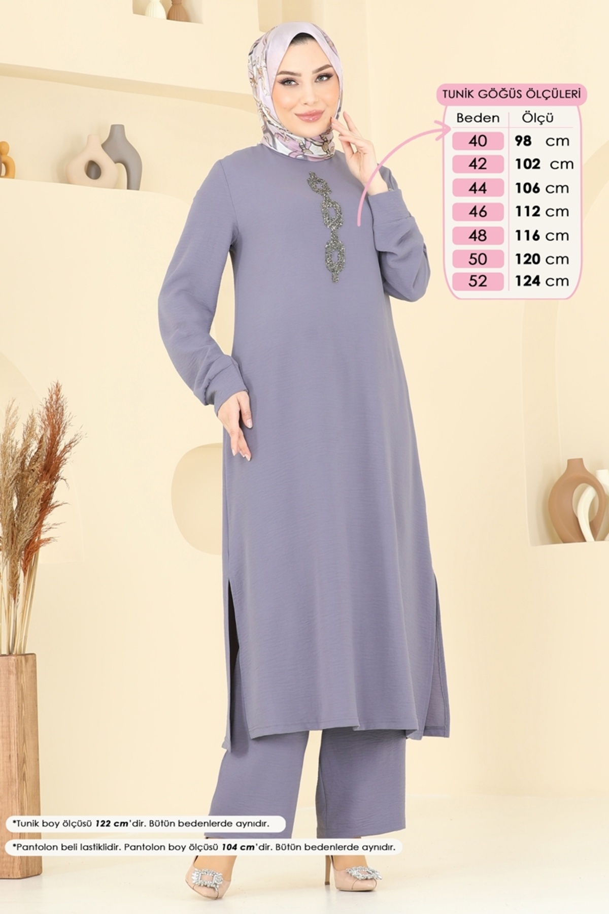 Önü Taşlı Tesettür Takım 2627SL432-MS Gri Önü Taşlı Tesettür Takım 2627SL432-MS Gri 52