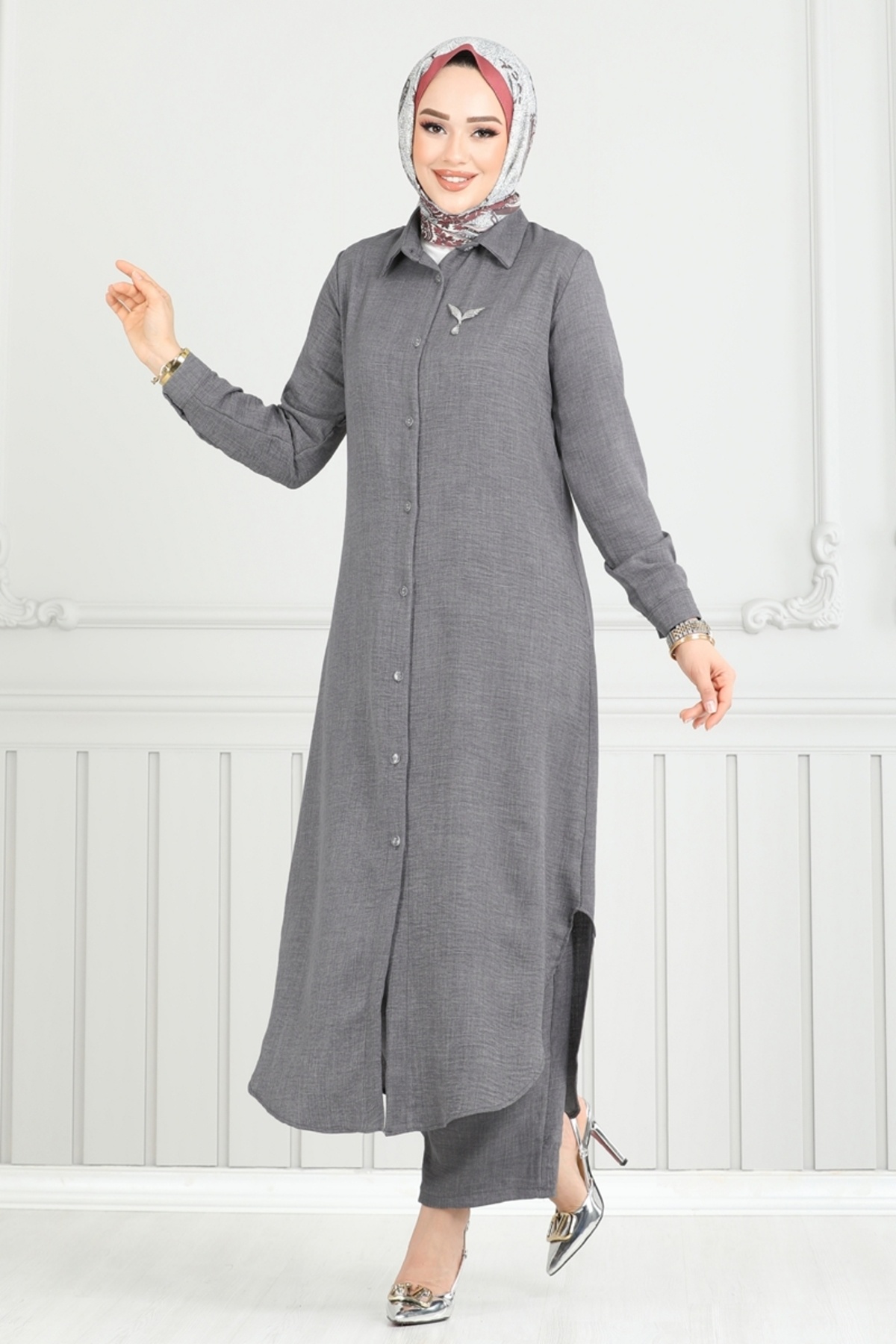 Apolet Düğmeli Tesettür Takım 2632SL432-MS Koyu Lila Apolet Düğmeli Tesettür Takım 2632SL432-MS Koyu Lila 52