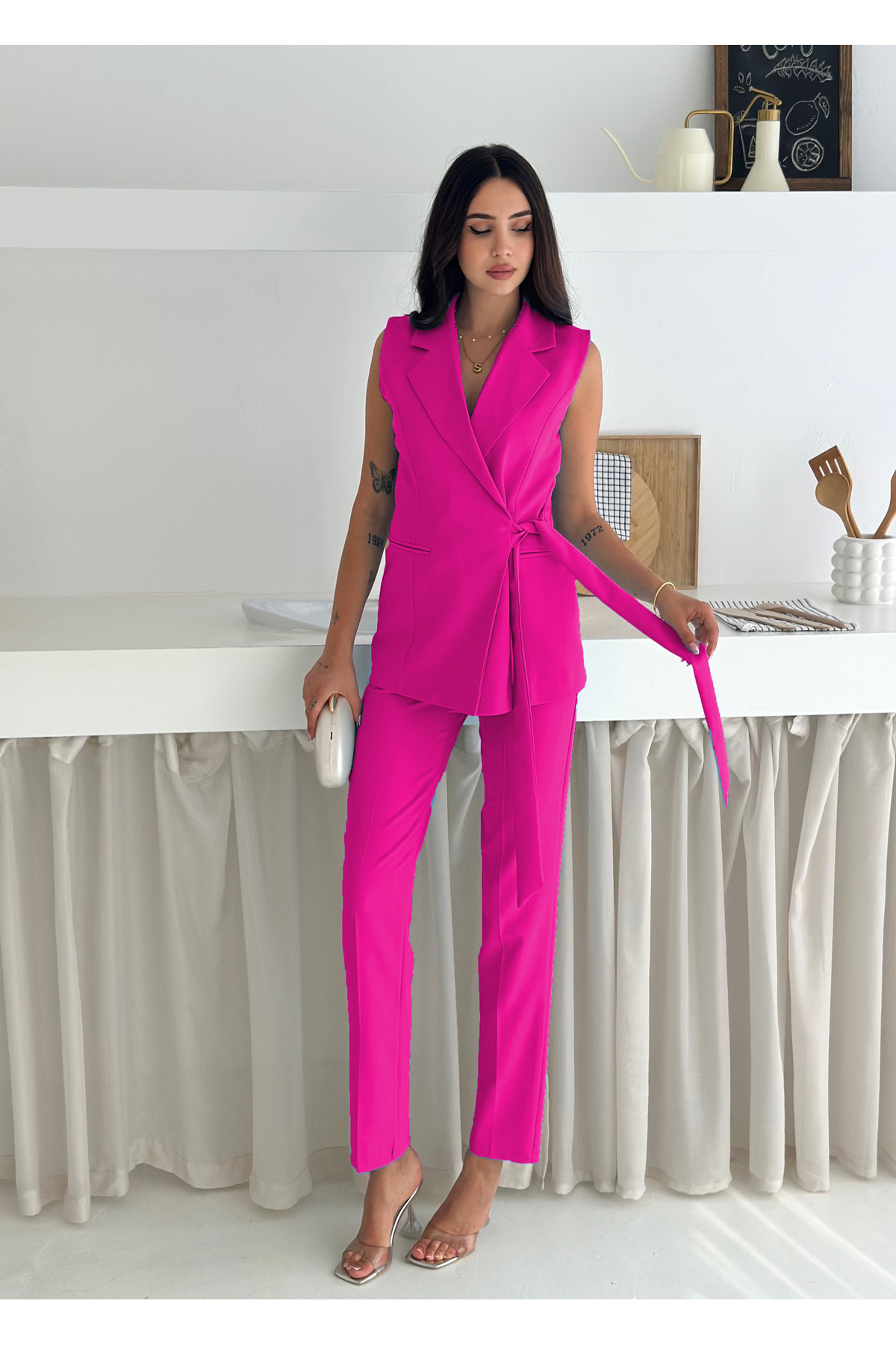Açık Mavi Kuşak Bağlamalı Yelek Kemerli Havuç Pantolon Dokuma Kumaş İkili Takım Açık Mavi Kuşak Bağlamalı Yelek Kemerli Havuç Pantolon Dokuma Kumaş İkili Takım Mdia25010702 3XL